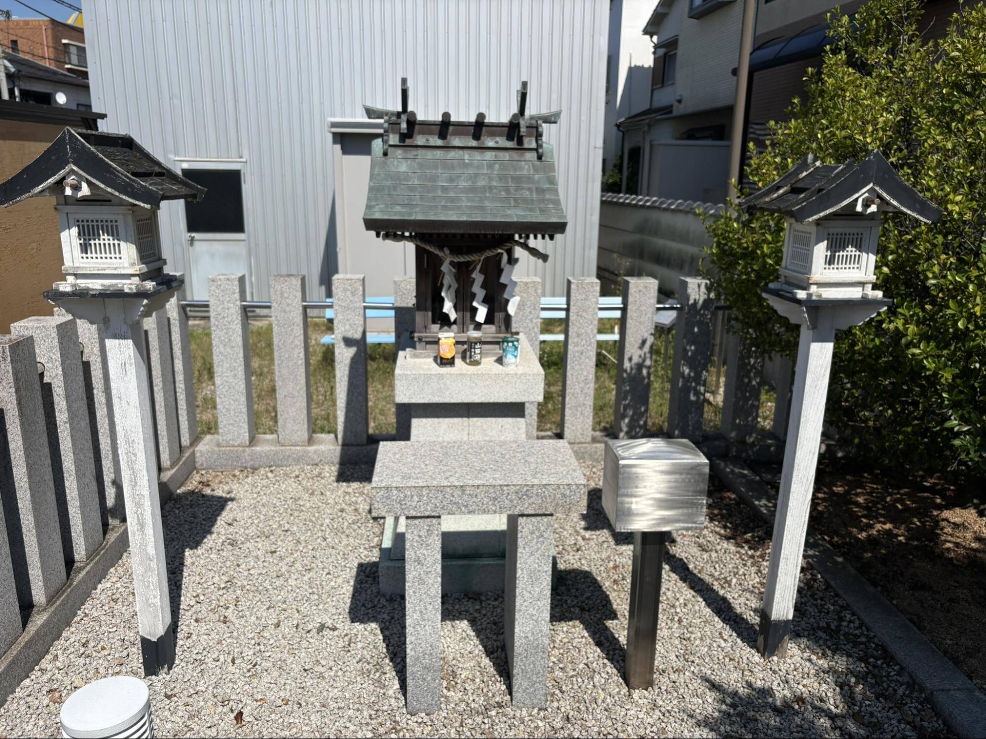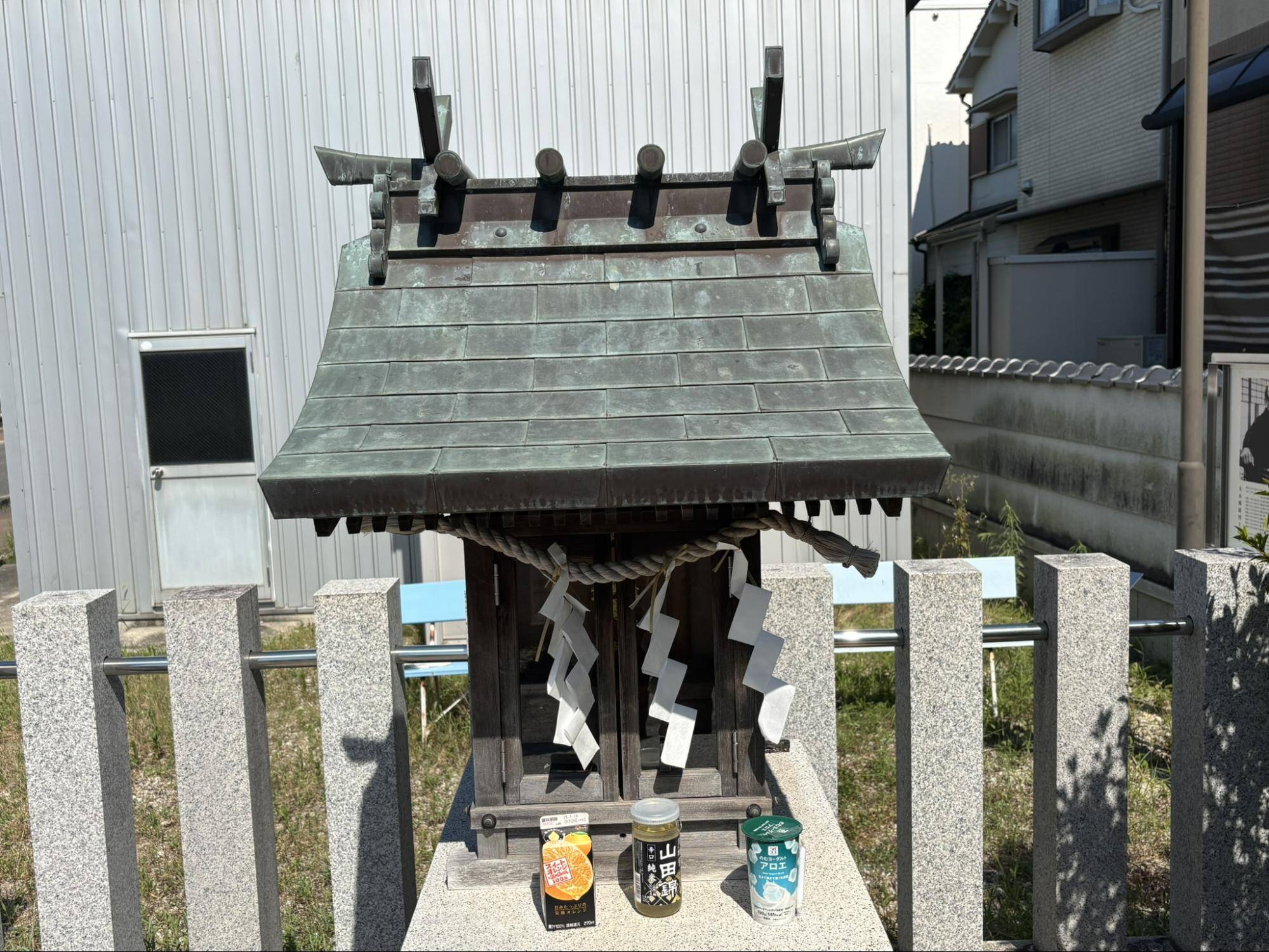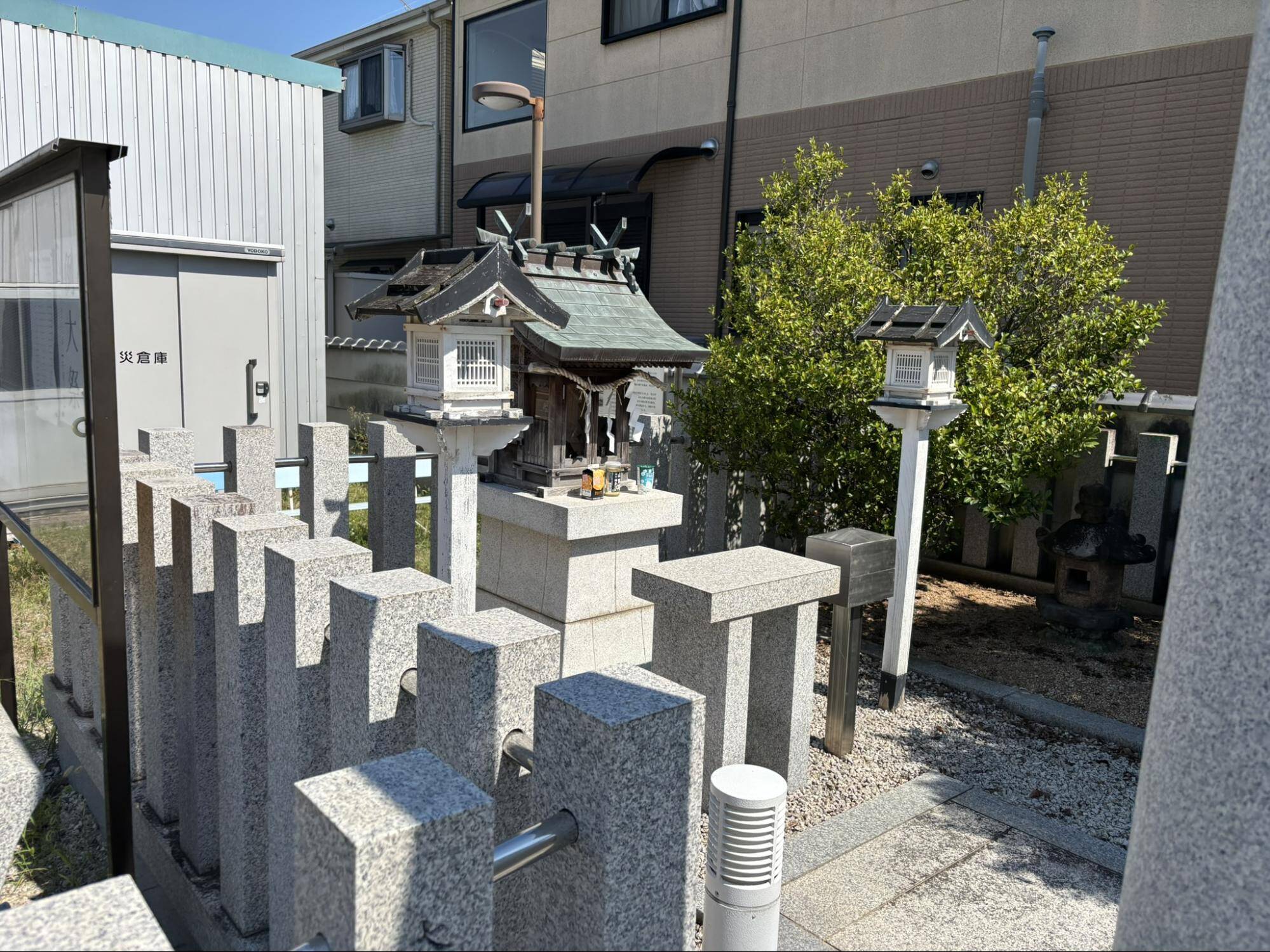 場所はSAYAKA公園のすぐそば、住宅が集まっている中にあります。小さな社(やしろ)や祠(ほこら)が住宅の間にポツリとあるのはよくあることですが、気になったのはここの建物が比較的新しい点です。