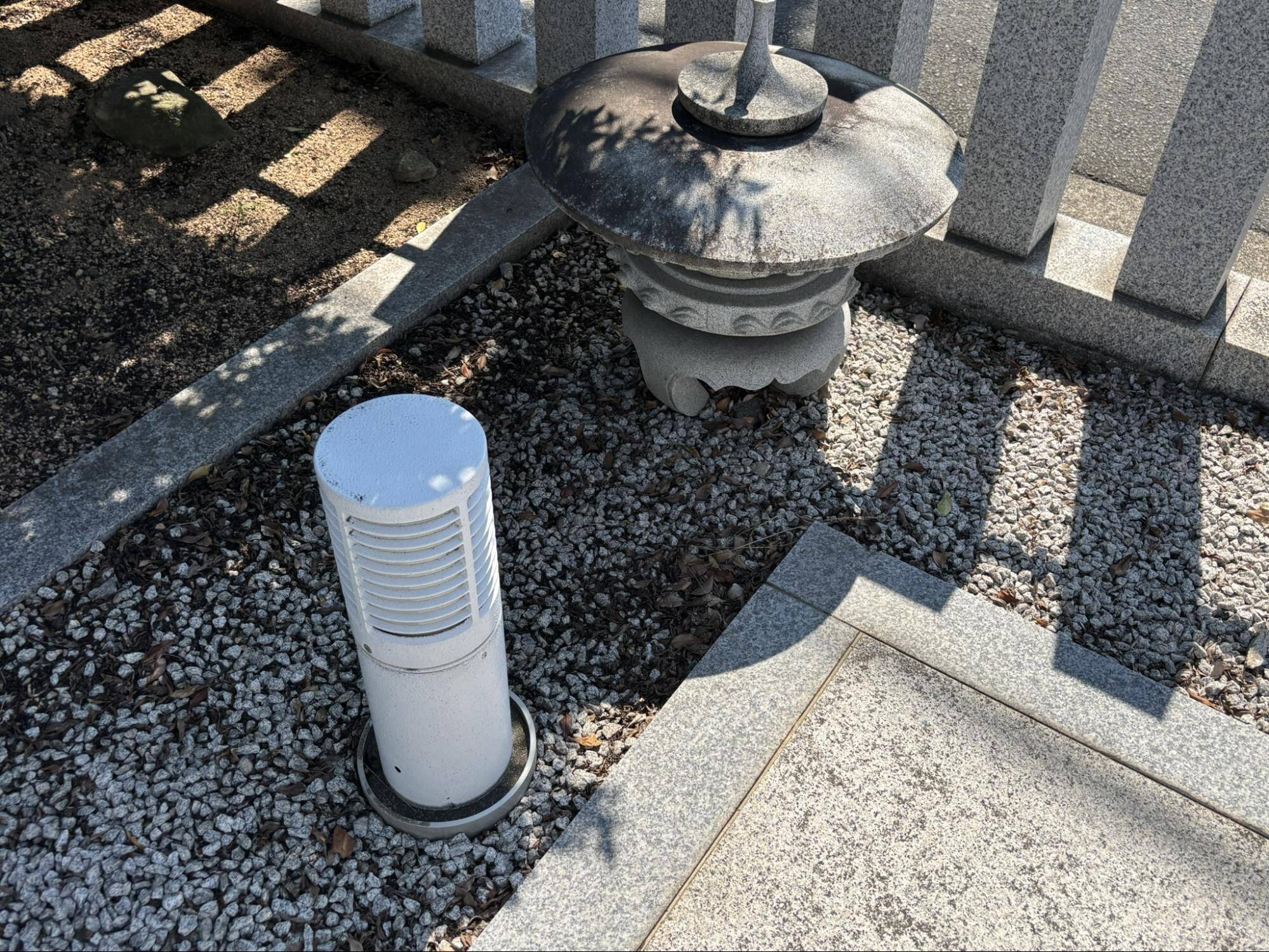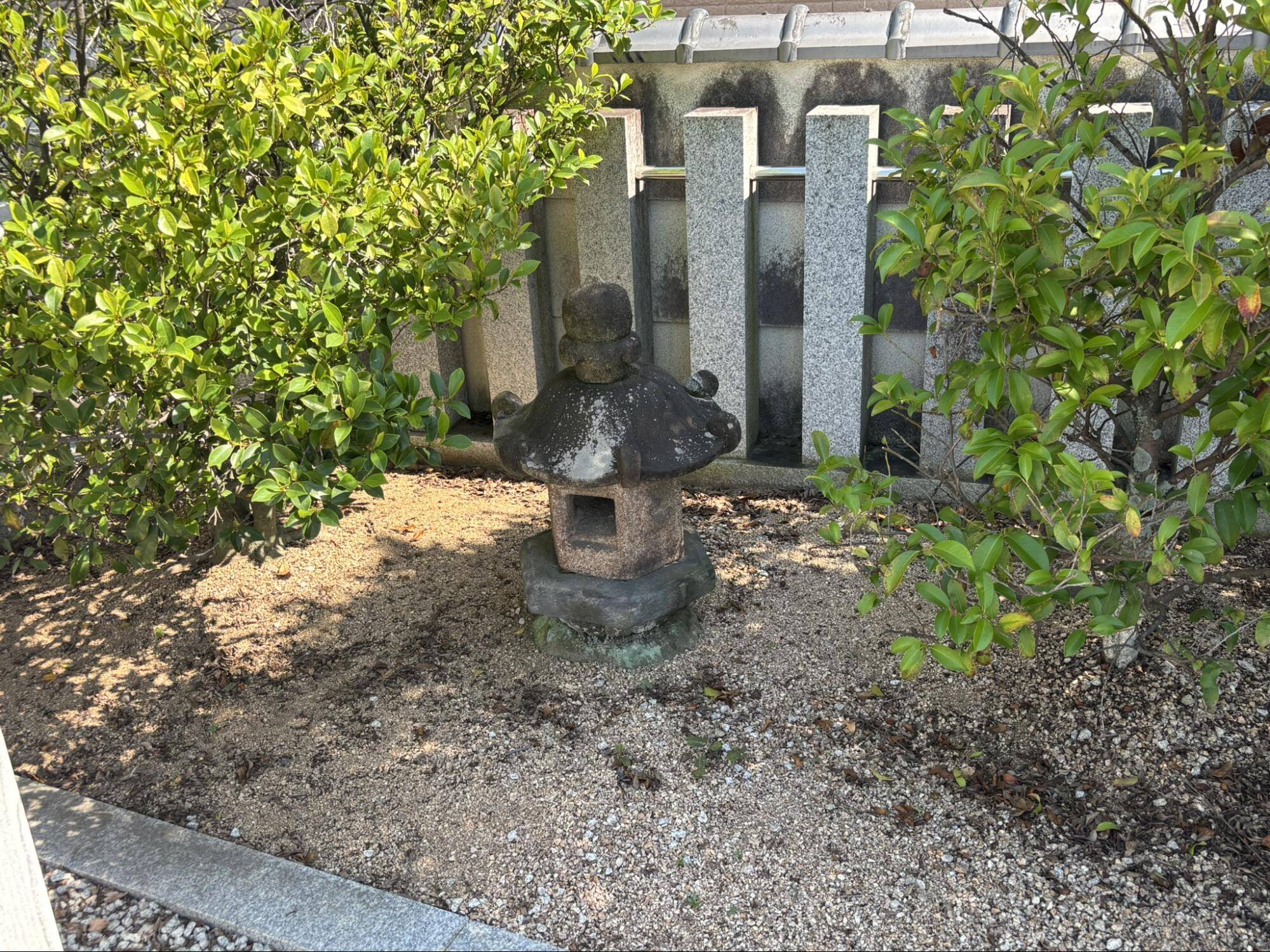 境内には石灯篭の上の部分があり、鳥居や玉垣と違って少し古いように見えます。かつてさやま池遊園の境内にあったときに利用されていたものかもしれません。