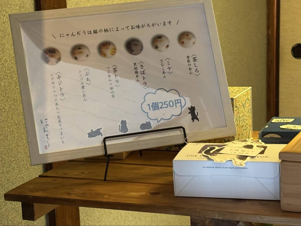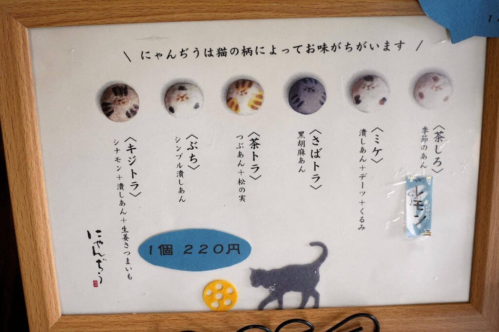 そして昔同様のにゃんぢうのメニューがそろっています。すべての種類に異なるフレーバーが味わえてかつ体に良い素材のみを使っているのが良いですね。