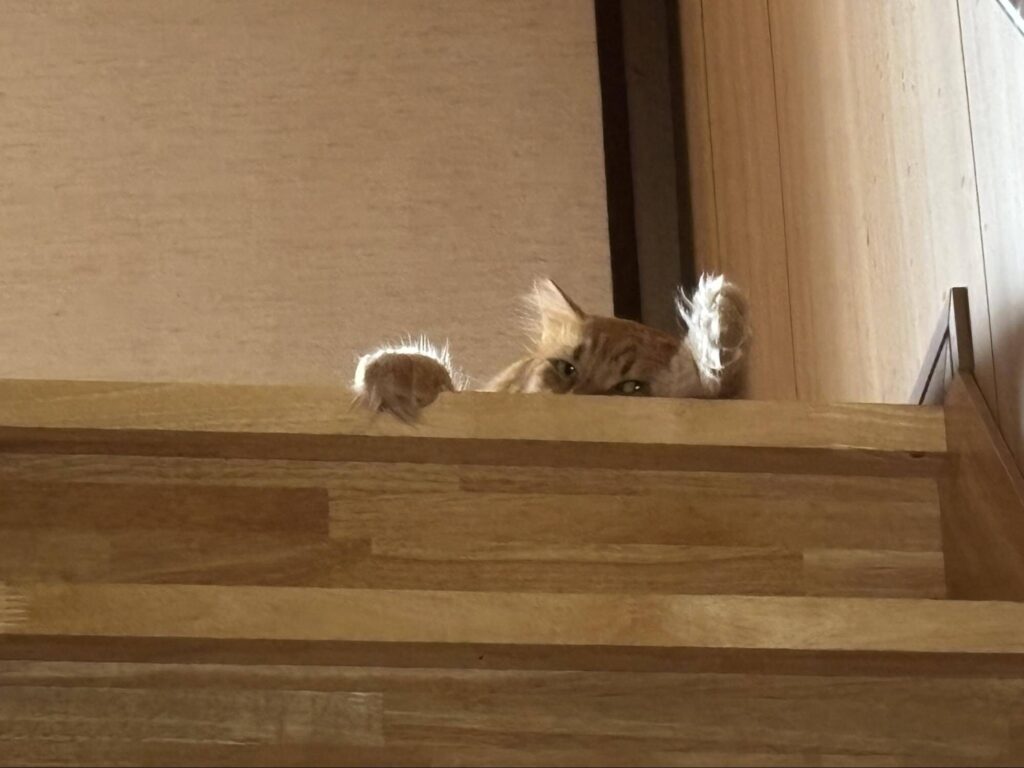 (取材時は緊張しているのかファミリーは階段の上から様子をうかがっていた)