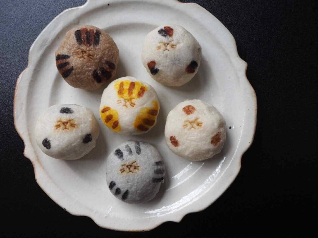 こちらがもちねこさんの「にゃんぢう」です。外観もフレーバーも異なるお饅頭を毎回6種類程度作っています。