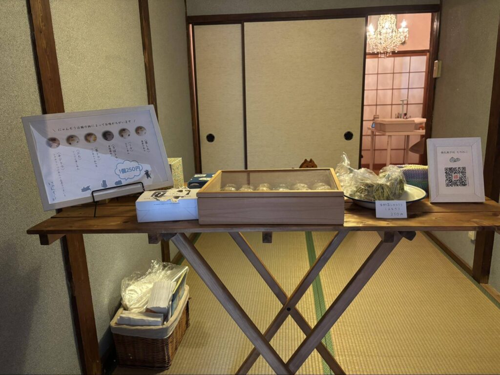 店舗はない状態ながらも多方面で活躍していたもちねこさんでしたが、2025年5月になり、新たにお店を復活オープンしたという情報を得ました。場所は七つ辻から国道310号線沿いにちょうどNTTのビルの手前を右に曲がったところにあります。