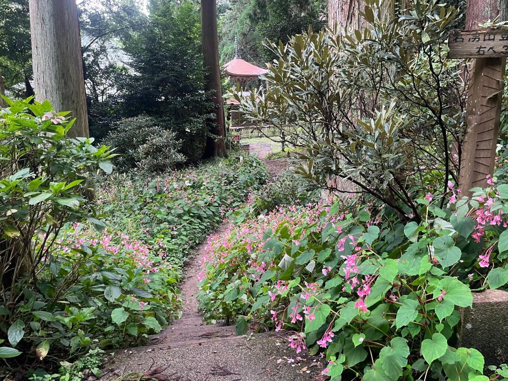 岩湧寺の秋海棠は、9月の間楽しめます。新しくなった多宝塔の屋根とともに、ぜひ実際に見に行ってください。
