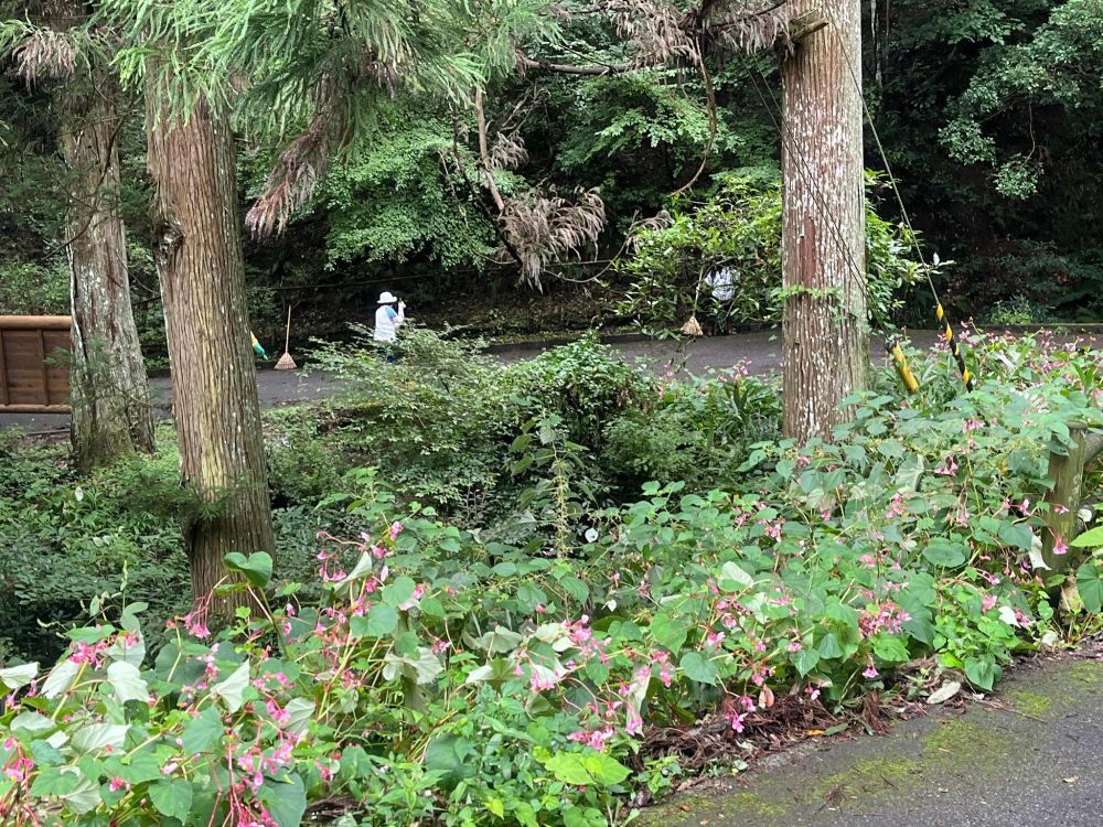 見ると、確かに掃除をしている方の姿が見えました。こういう人たちの日々の努力があればこそ、美しい秋海棠を引き立ててくれているのでしょうね。