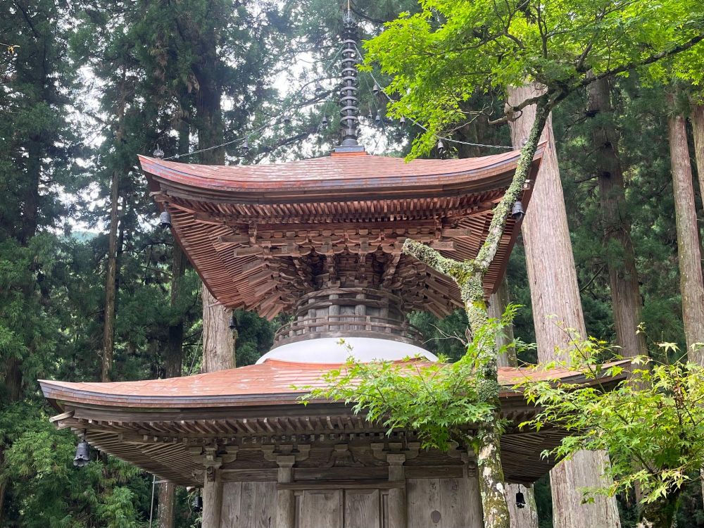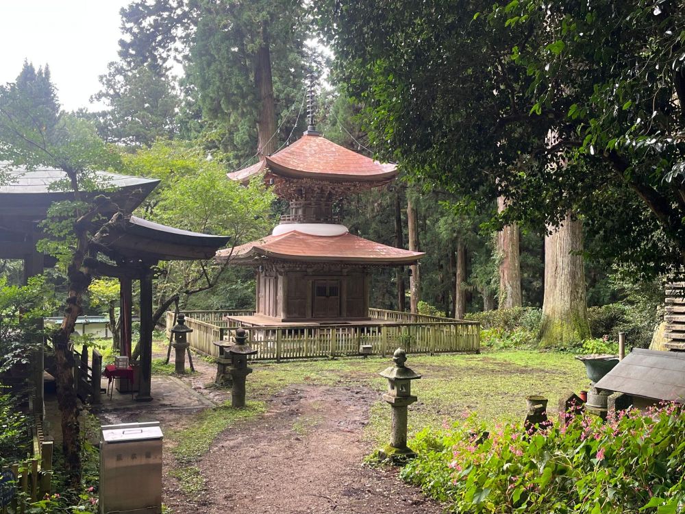 多宝塔は国の重要文化財で、室町時代末期の建立、13メートルの高さがあります。内部には平安時代末期に作られた木造の大日如来坐像が安置されており、像の高さは88.7センチメートル。こちらも国の重要文化財に指定されています。