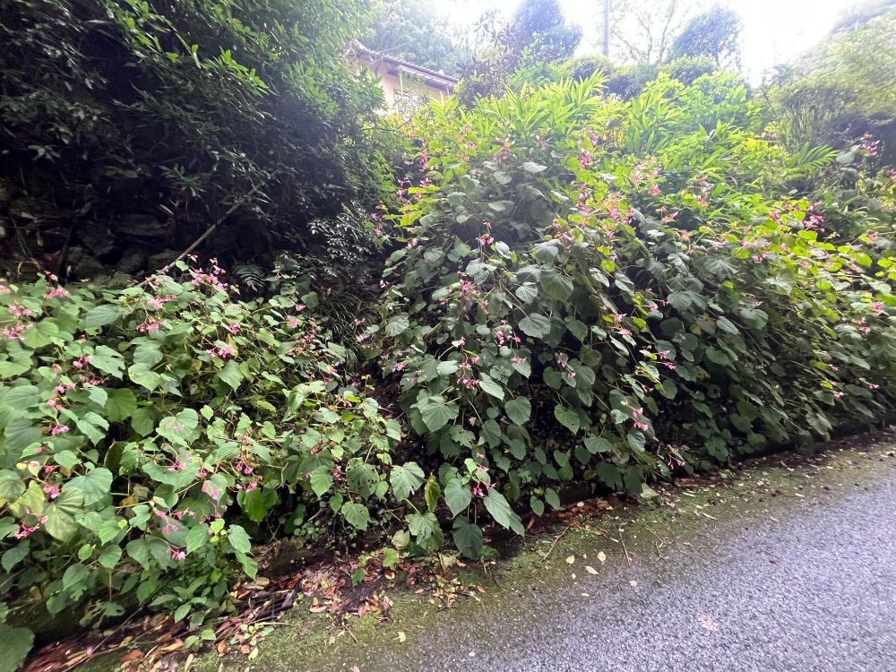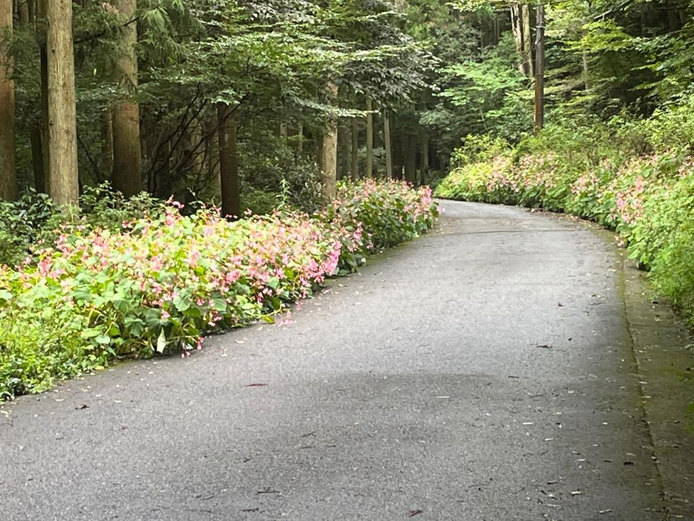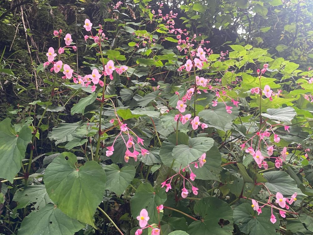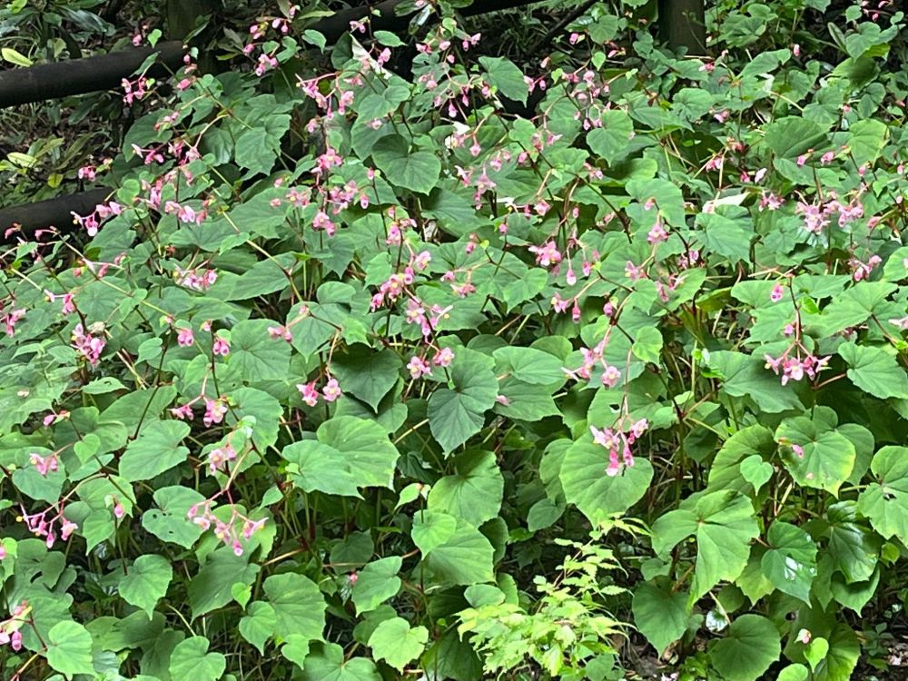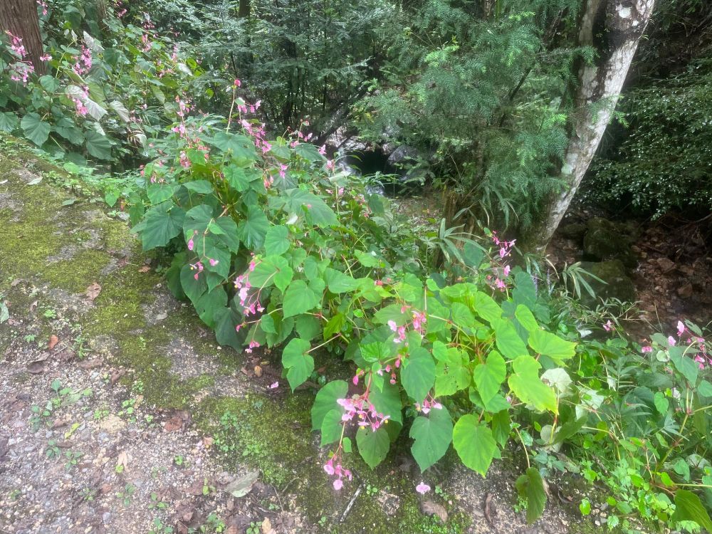 秋海棠は、岩湧の森に入ってから特に群生が多くなります。特におすすめなのが第6駐車場から第5駐車場の間です。この間は、ほとんど途切れることなく秋海棠が群生していました。