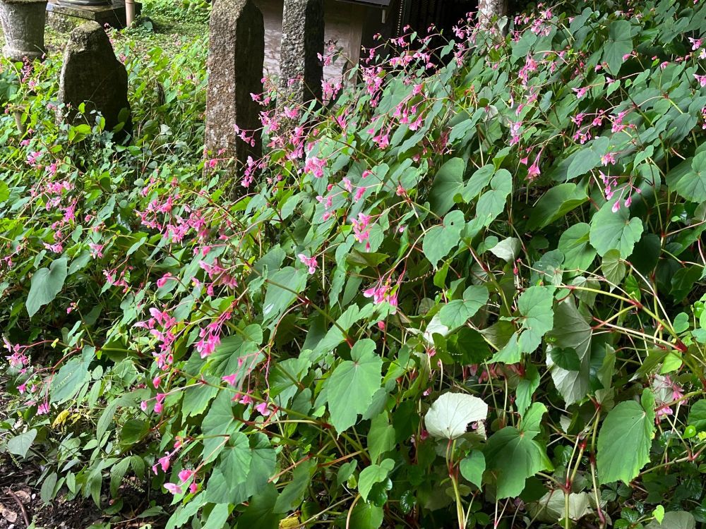 岩湧寺の秋海棠は、秋の彼岸のときに仏壇やお墓にお供えするのに便利なように寺域に植えたのが始まりだそうですが、それにしても本当に多くの秋海棠が咲いていますね。