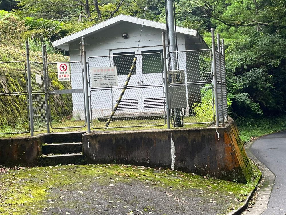 やがて集落が途切れて周りが山となり、そのまま舗装された道を上がっていくと、次のような建物が現れました。この建物を過ぎたところで、
