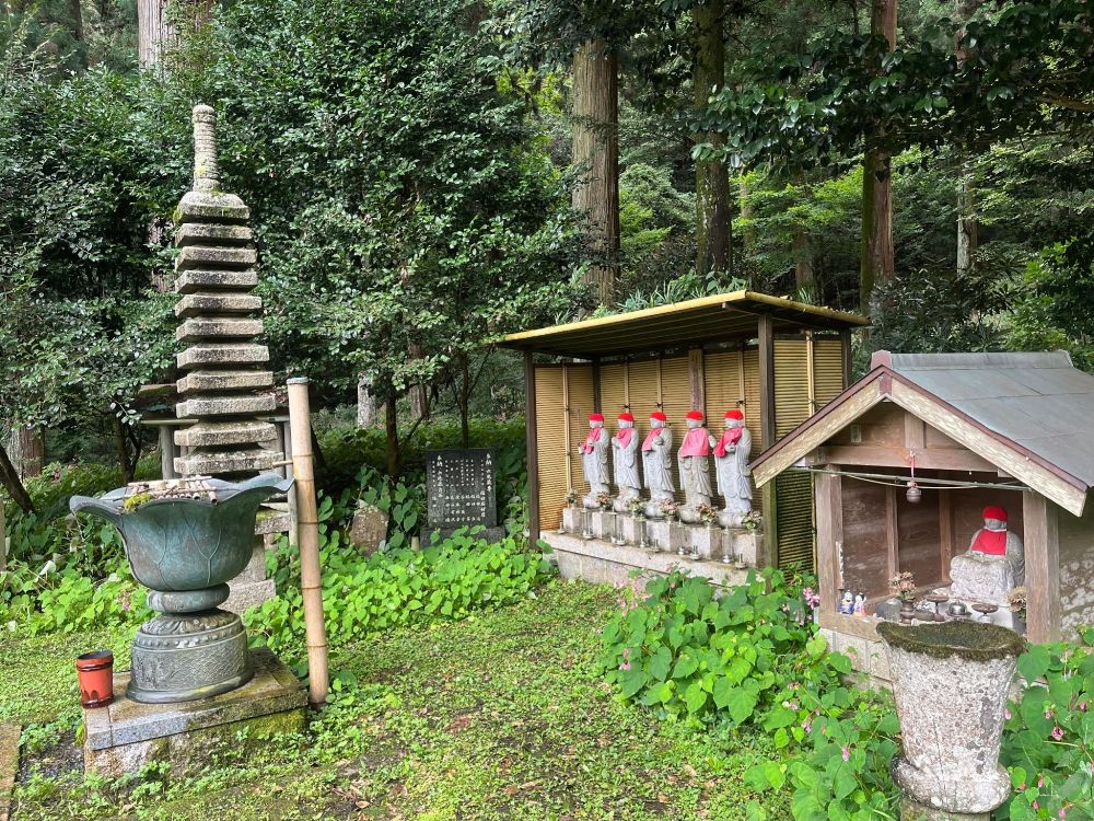 本堂の前には地蔵菩薩と、石塔などが並んでいます。