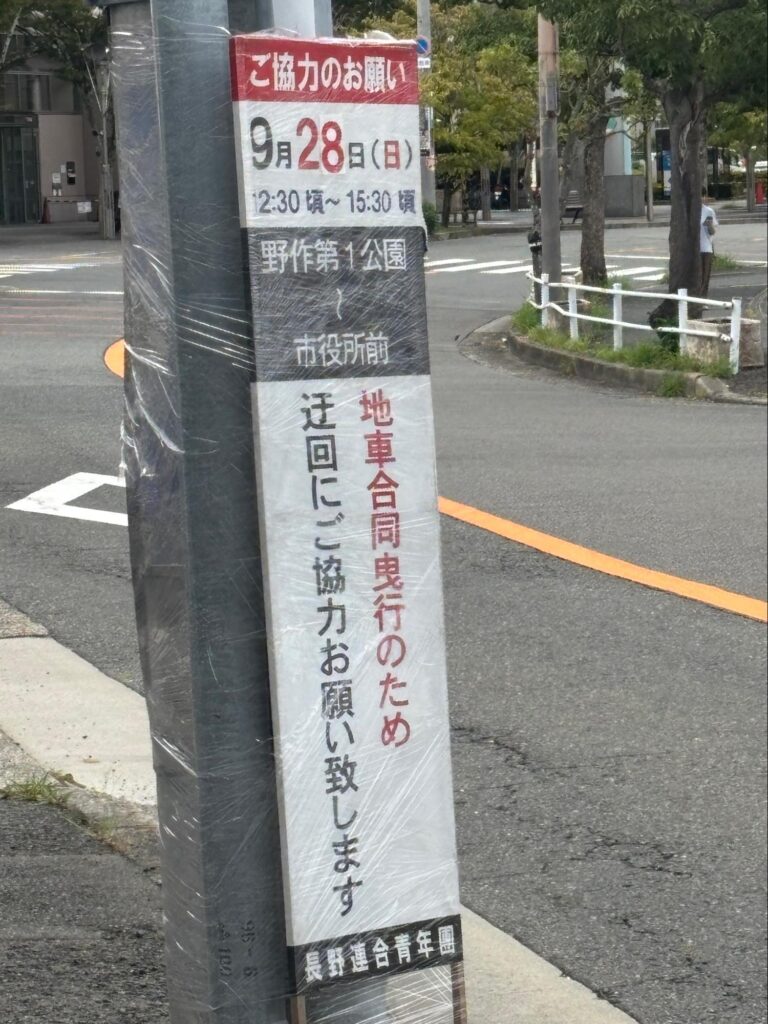 すでに河内長野の町を歩いていると地車曳行のための交通規制に関する案内が出ていて、お祭りが近いことを知らせてくれます。また夜になると提灯が点灯し、今年もいよいよ秋まつりなんだと感じさせてくれます。