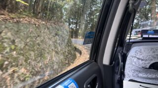 中央センターからしばらくバスが走ると再びPLの塔が見えてきました。この辺りで近鉄バスのチケットを使用してみましょう。