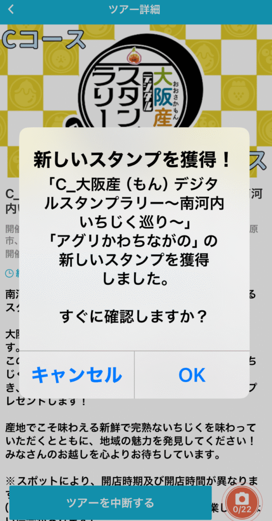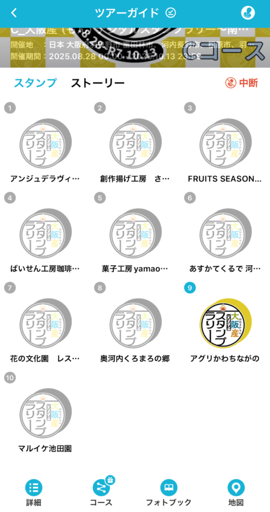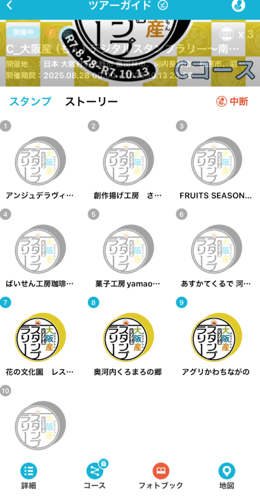 ちなみに河内長野はCコースで4スポットがあるのですが、そのうちの3スポットはほぼ一拠点に固まっているため。スタンプを一度に3つ取ることができます。
