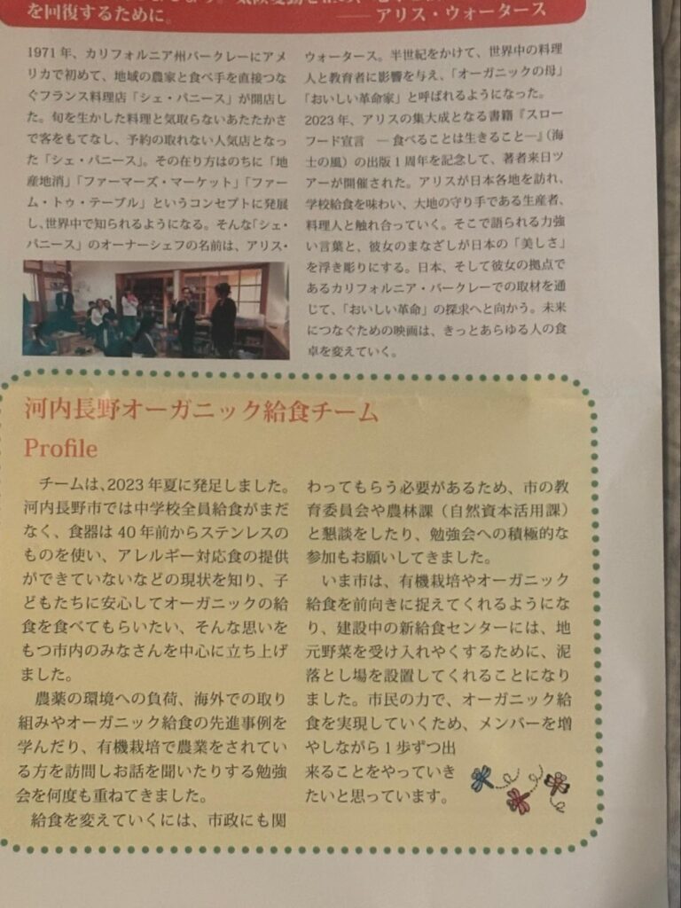 今回の映画の上映会を企画した河内長野オーガニック給食チームについては、オーガニック野菜を広める活動を定期的に行っていて、以前取材をしたことがあります。