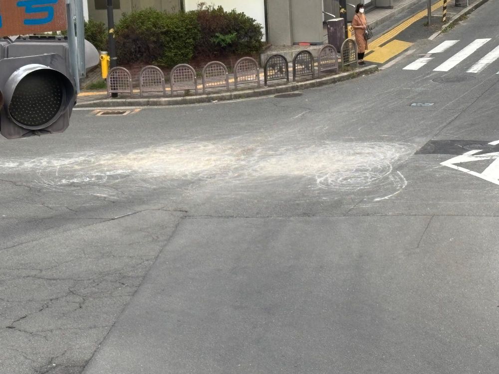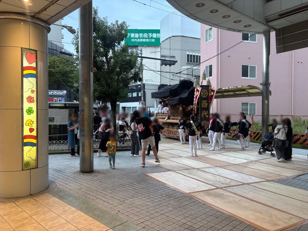 さて、ノバティながのから出た時にはすでに地車のほとんどが別のところに向かったのか、いつもの河内長野駅前に戻っていました。ただぶんまわしを披露したであろう場所は道路が白っぽくなっていました。