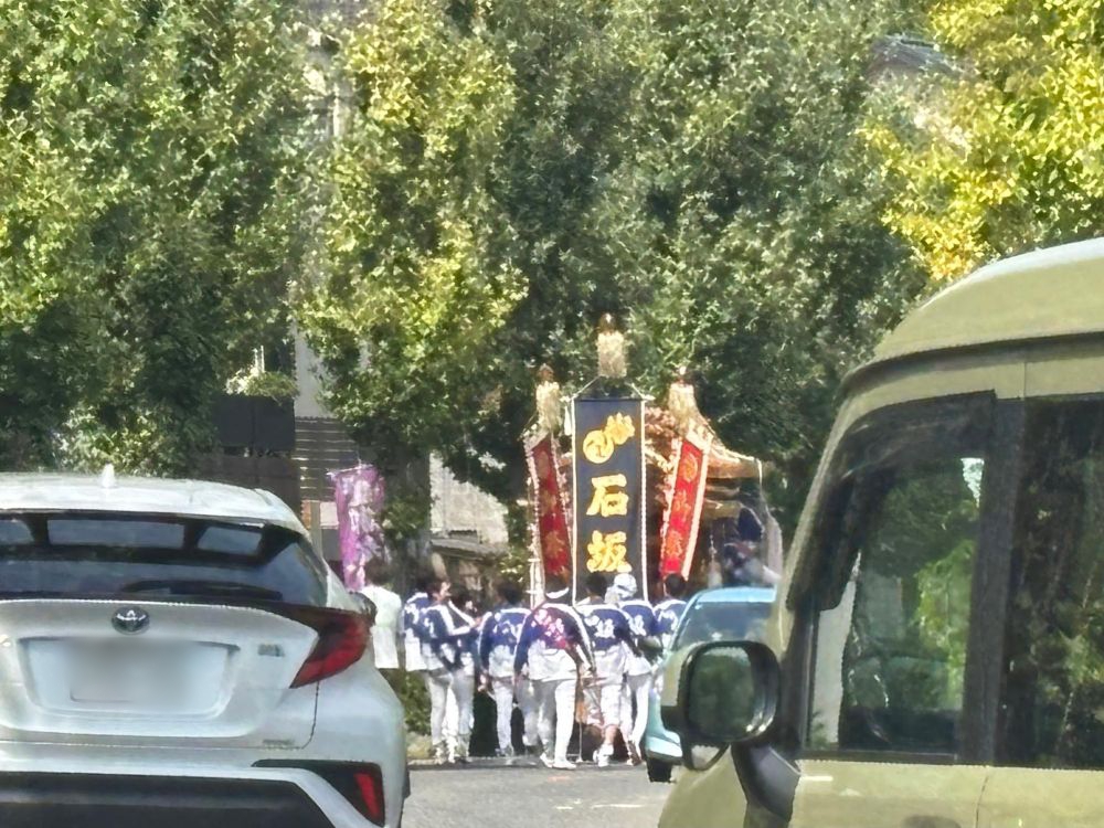 こちらは車も通過している道路上ですが、石坂の地車が見えます。