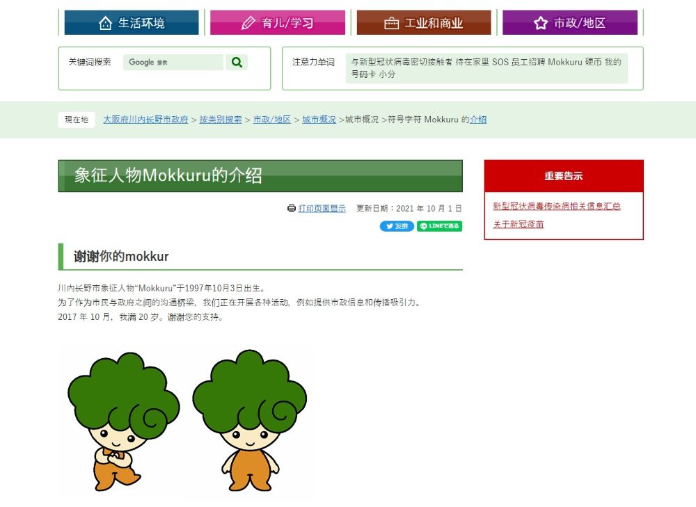 気になったので、河内長野のホームページの外国人向けの翻訳機能(中国語)で調べてみました。