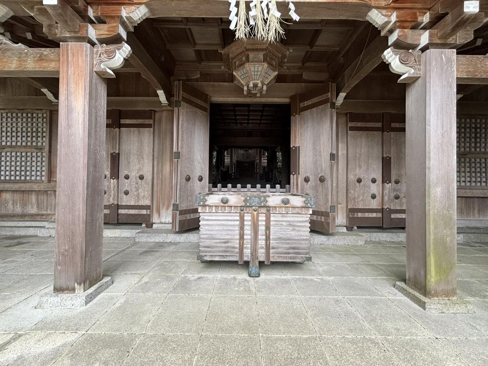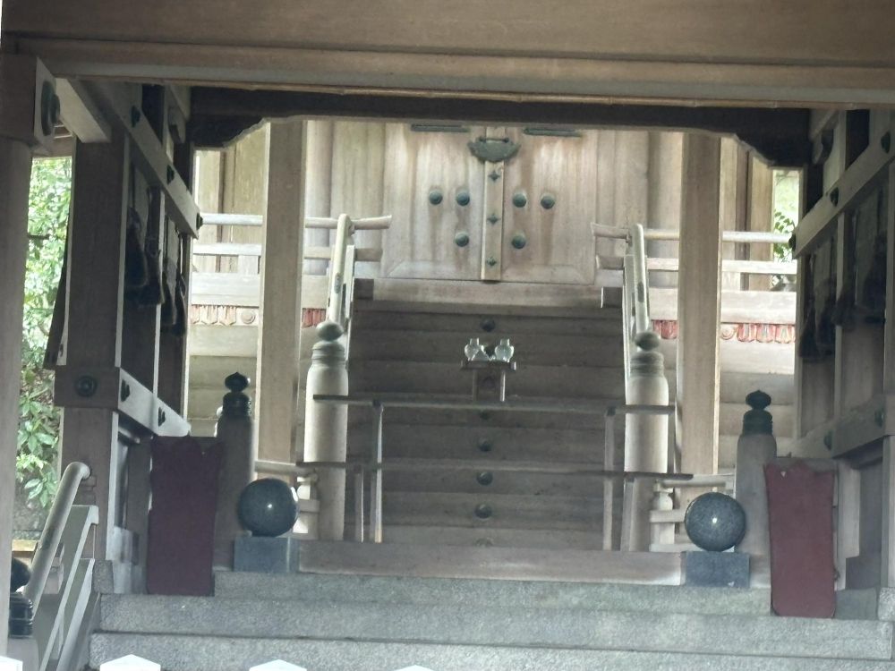 ということで参拝しました。拝殿の扉が開いていて遠くに本殿が見えます。