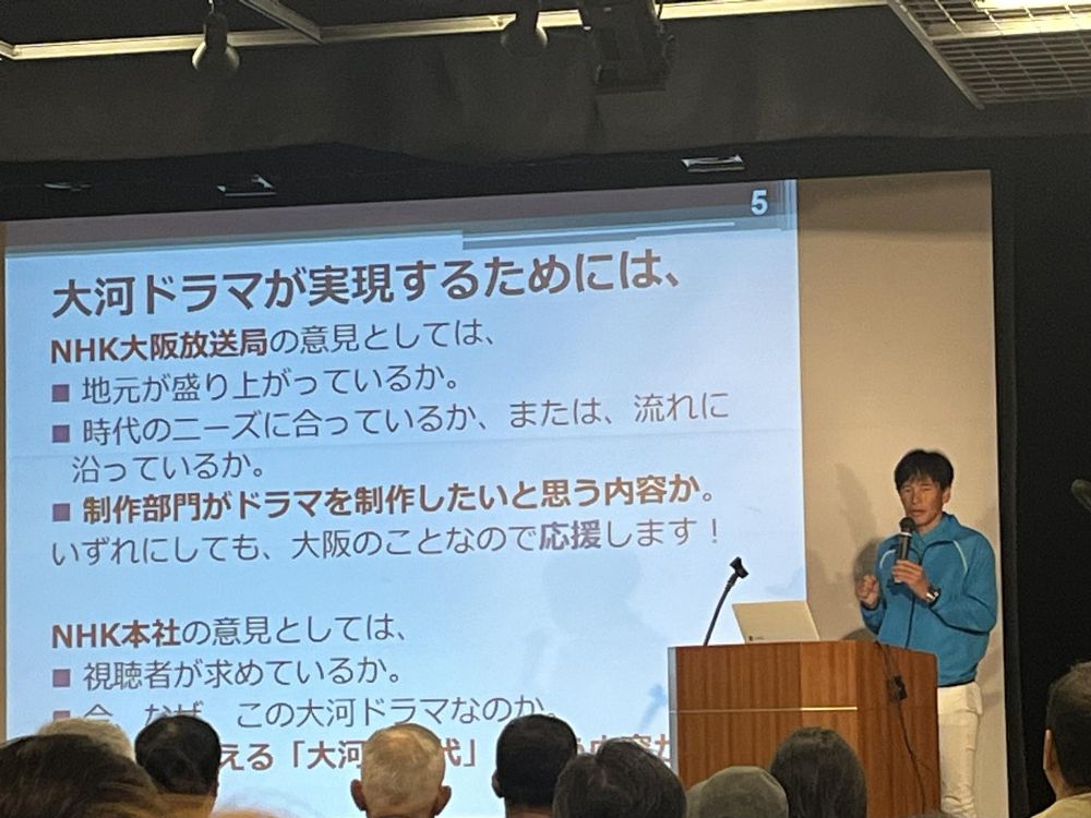 だとすれば、鎌倉幕府滅亡700年後の2033年以降かもしれないので、少し先になるかもしれません。たとえそうだとしてもこのような講演会を通じて粘り強く活動を続けることが大河ドラマ実現への近道と考えられますので、地域の取り組みとしては大事なんだと感じます。