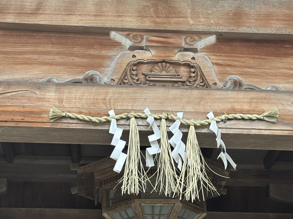 拝殿の上には、楠木氏の菊水紋が見えます。