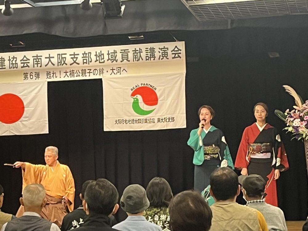 講演会の主催者、大阪府宅地建物取引業協会南大阪支部 東門幸一支部長は、千早赤阪村小吹で会社を経営されていて、金剛山に日々登山されている方です。そして東門支部長は楠公に関する講演会をする理由として次の2点を挙げました。