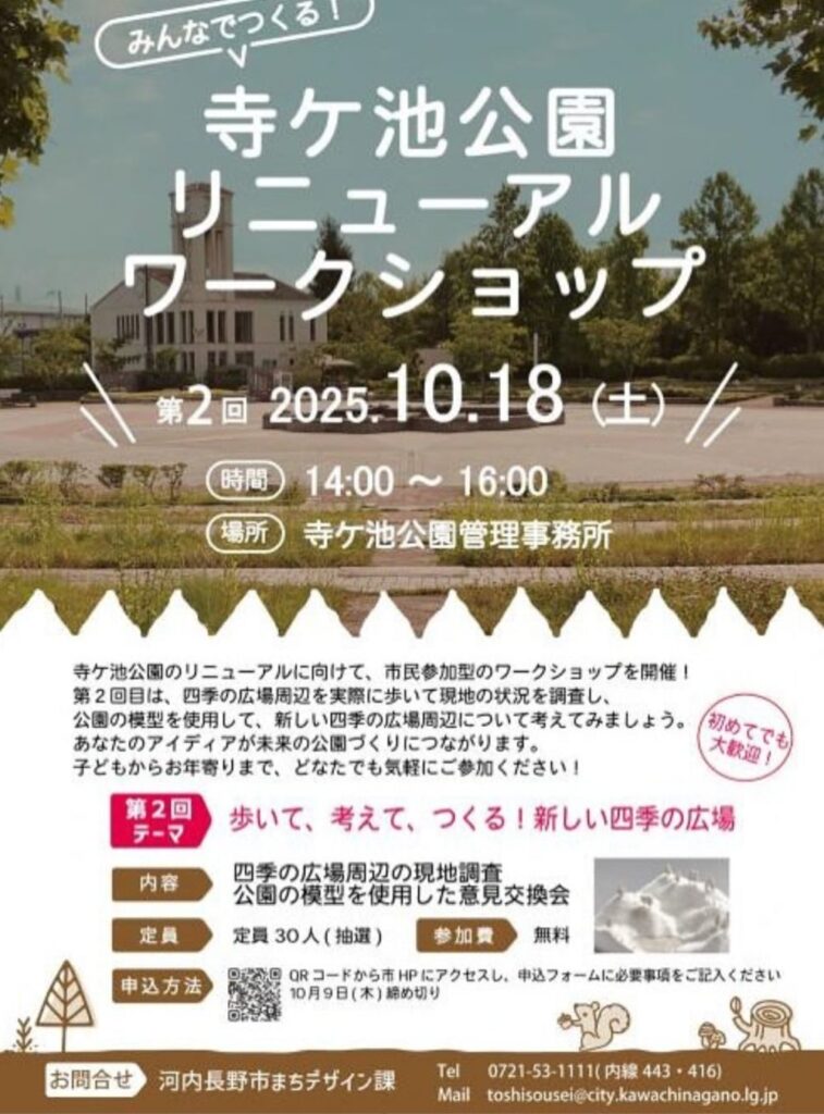 10月18日 第2回 寺ケ池公園リニューアルワークショップ9日締め切り