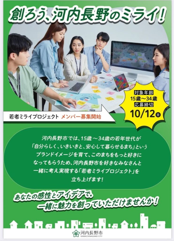 【河内長野市】15~34歳を対象とした若者ミライプロジェクト参加者を12日まで募集中(オリジナル)