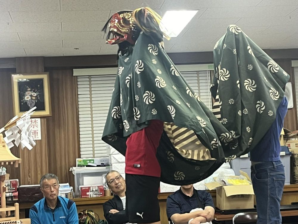 実は、以前、練習風景を拝見したことがあります。胴体がエアー状態で、獅子の頭を持ち動きだけを練習しています。10日金曜日は、春日宵宮としてみのでホールししまい館で獅子舞の奉納が行われます。