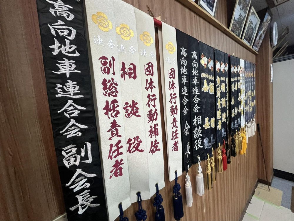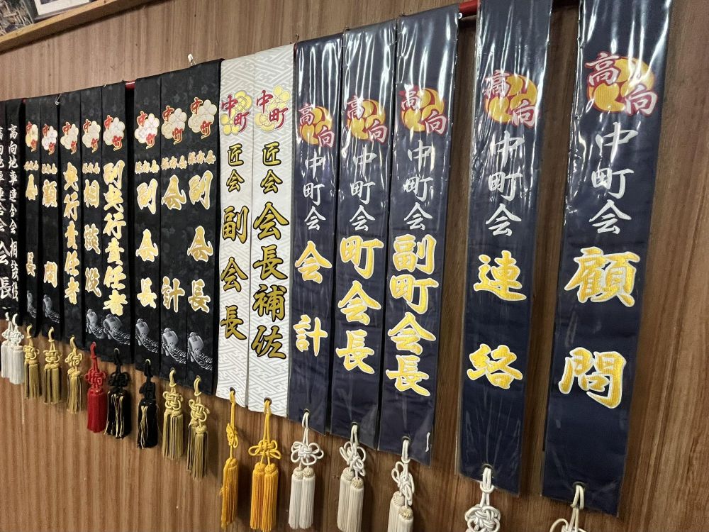 中町の集会所です。普段中町関係者でない限りはいらないような場所。いろんな肩書きのタスキが並んでいますね。