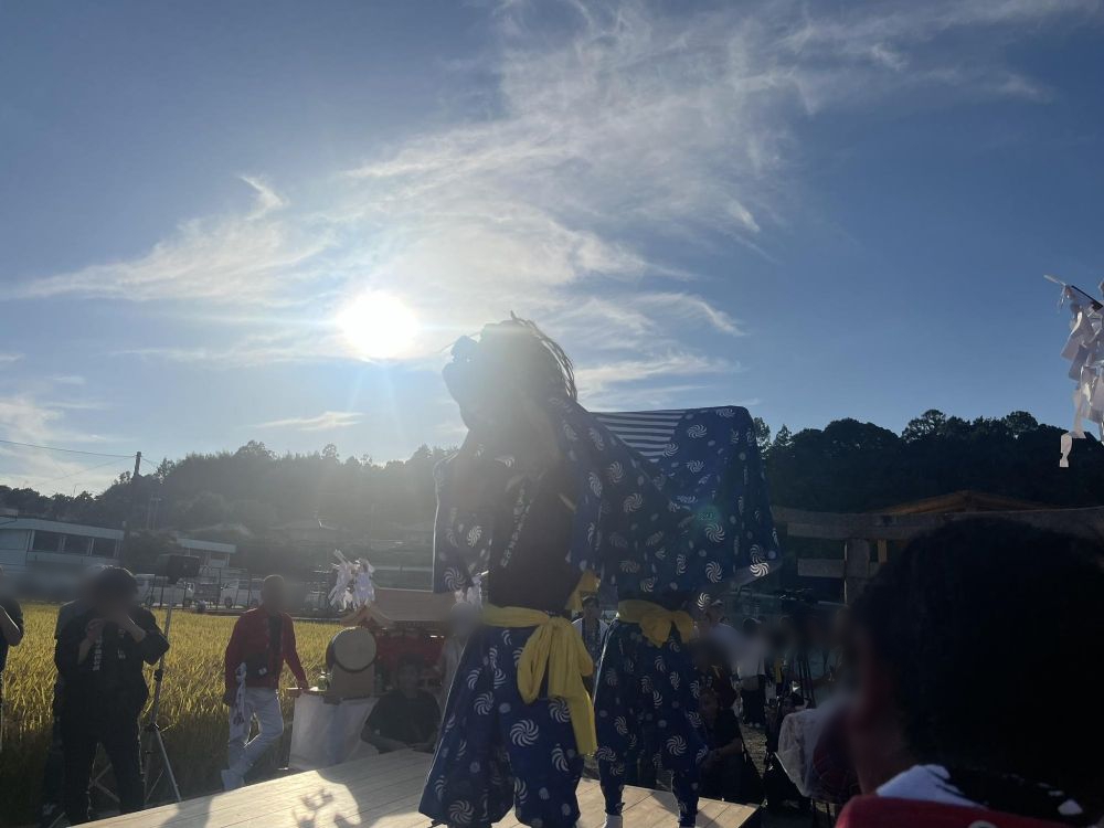 こうして高向神社の秋祭りは無事に終わりました。この後地車は次の日曜日の夜まで曳行きが行われます。今年は日野獅子舞もくろまろの郷でパレードに参加します。それらが終わればいよいよ高向地区でいよいよ稲刈りが始まります。