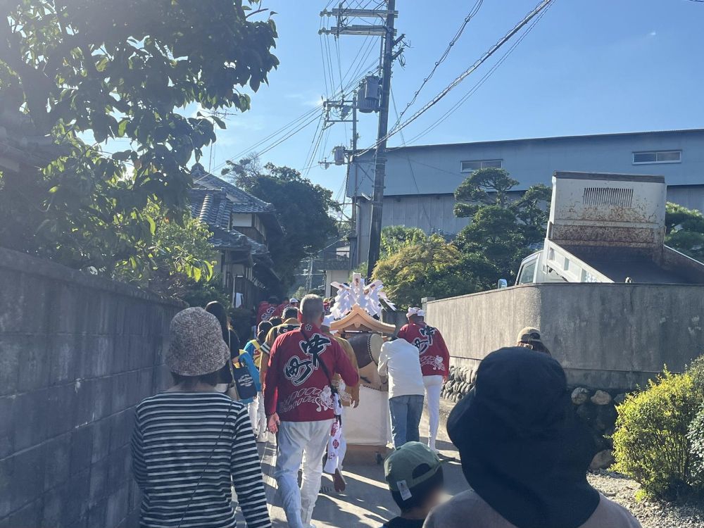 御旅所は高向上町にあります。お祭り前とあってまちを歩いていると、今年の若衆(青年団)の団長の紹介などがありました。