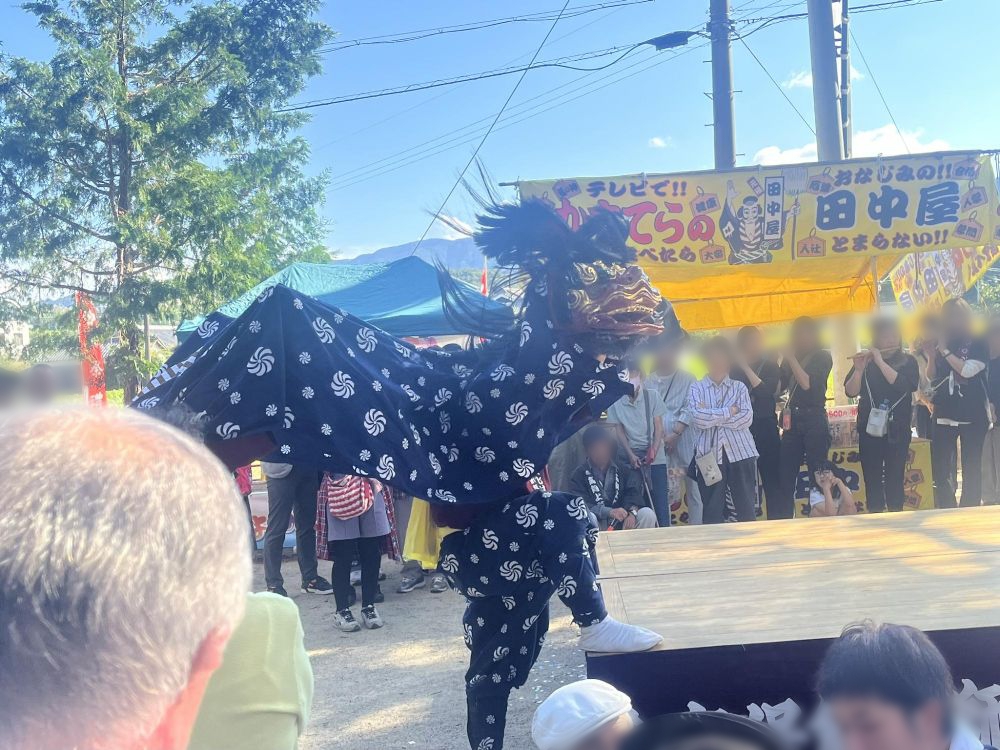 地域の人たちの厳しい視線の前で練習する子ども獅子舞です。素人が見たらすでにレベル高そうな印象でしたが、地域の人たちは細かいところでチェックを入れていて、本番まで気の許せない状況という感じでした。