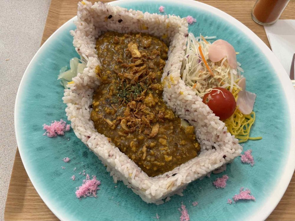ということで登場しました。桜さんバージョンの狭山池ダムカレー「こころキーマ」1200円です。10月末までの限定メニューなので、気になる方は今月中に行きましょう。