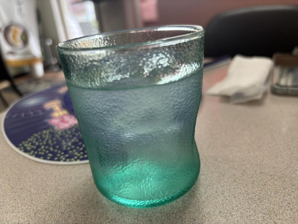 ちらりとカウンターを見ると画像のようになっていました。ちなみに席は画像のカウンターの他、4人座れるテーブル席が複数あります。さて、インテリアのこだわりについても伺ったですが、店名の「桜」をイメージしています。具体的には葉桜のグリーンと、淡いピンクの壁紙やカーテン。床は年輪が見える切り株状の木目を意識したそうです。そしてシャンデリアは満開の桜をイメージしました。今回は確認できなかったのですがトイレにもこだわりがあり、それは狭山池のブルーをイメージしているのだそうです。