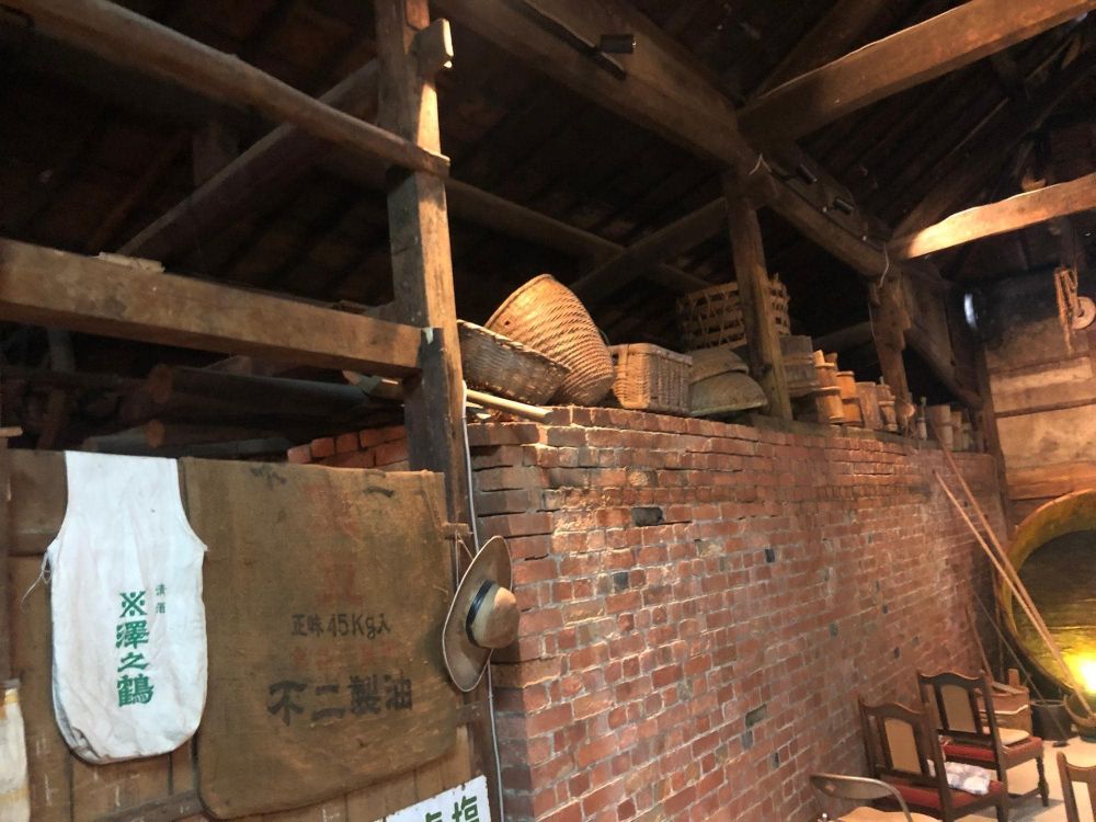 改めて上堂醤油蔵を見ると、元醤油を醸造していたという名残が随所に残っています。商店街の隙間から煙突が立っています。銭湯と勘違いしそうですね。
