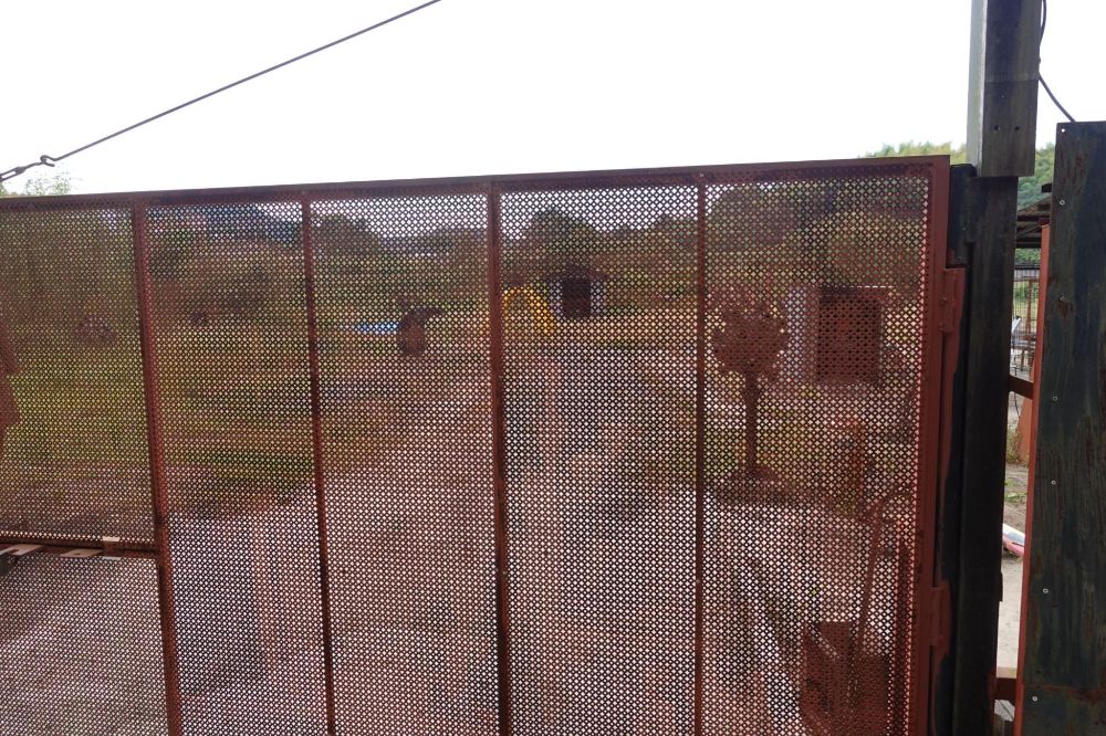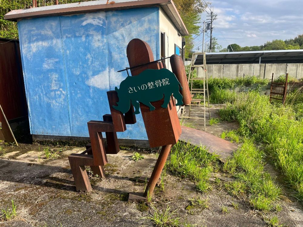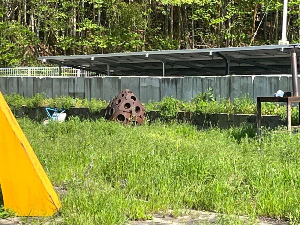 一昨年、佐備にある養鶏場「辰巳悦司養鶏場」を取材したことがありました。その時に養鶏場の間に大きな空き地のような空間が広がっていたのですが、そこを見ると金網の塀越しになにやら芸術作品のようなものが見えたのです。