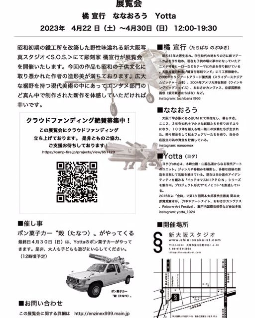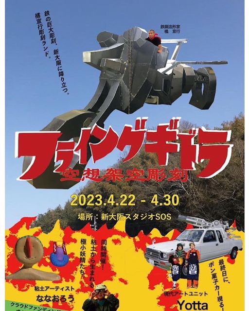フライングギドラは2023年4月22日から30日まで12:00~19:30まで無料で展示。場所は新大阪スタジオSOSで行われます。