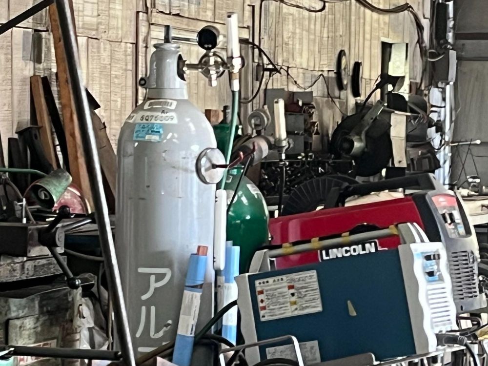 鉄同士をつなげる溶接作業もあるので、アルゴンガスのボンベも置いてあります。