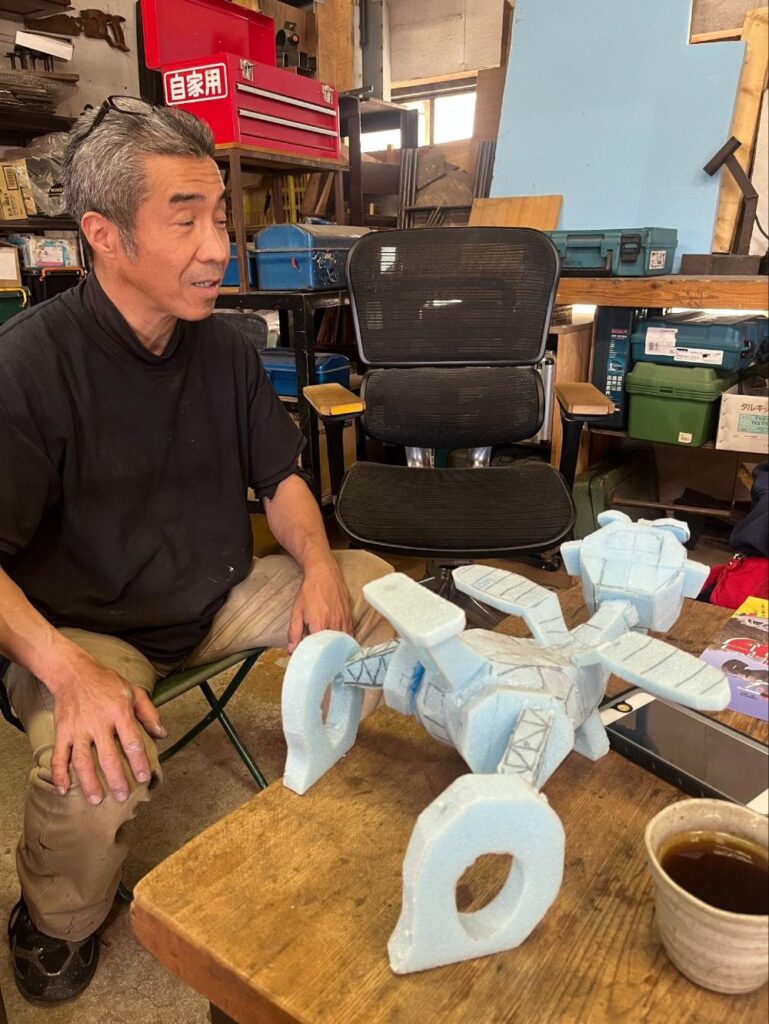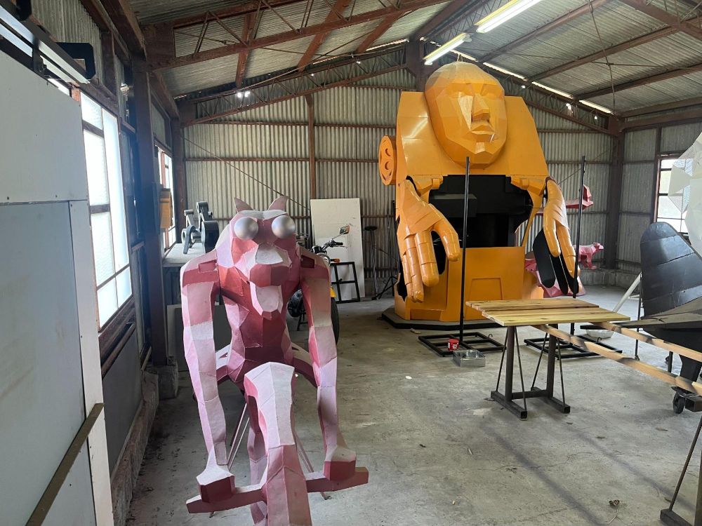 さきほど橘さんは外で塗装をしていて、創作の作業によっては外を使うこともあるようですが、基本は建物内の工房で創作活動をしているそうです。