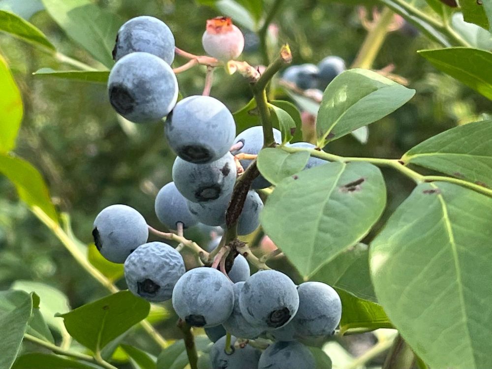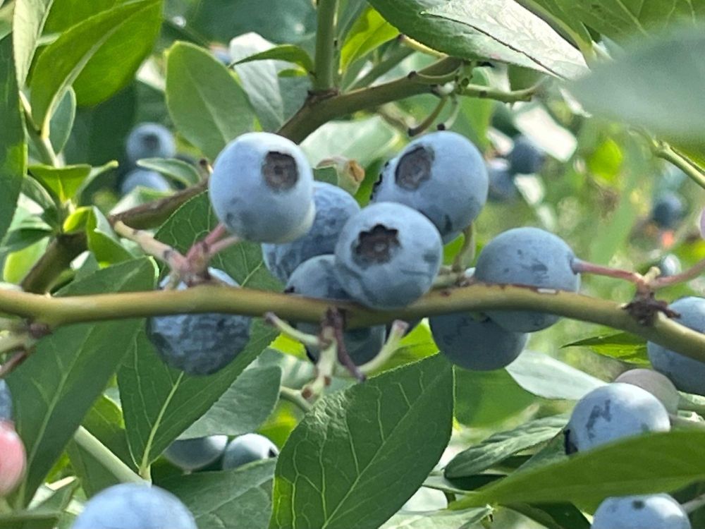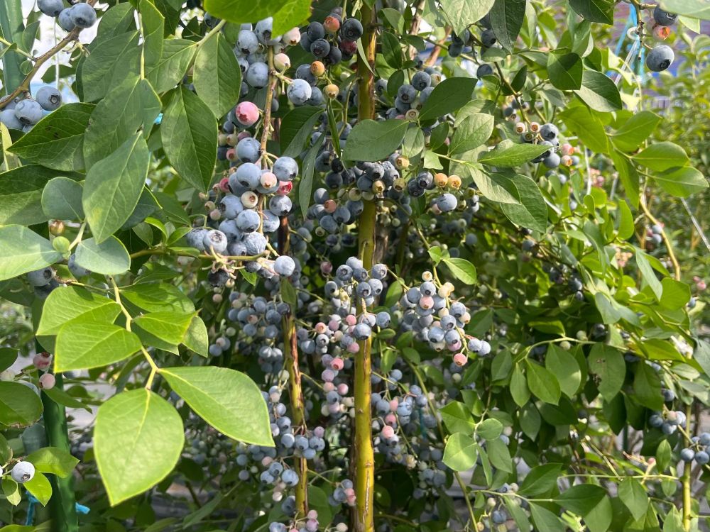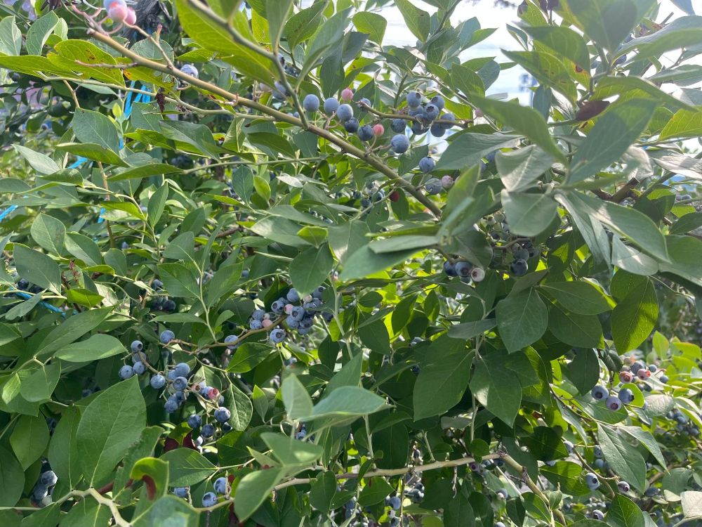 ということで、ブルーベリーのスイーツを堪能し、畑を拝見しました。畑にはまだまだ多くのブルーベリーの実がなっています。