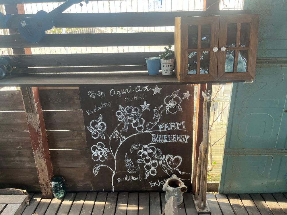 そのときのブルーベリーの美味しさが忘れられず、日本でブルーベリーの畑をやろうと決断したのだそうです。だからカフェスペースはアメリカの雰囲気に満ちていたんですね。