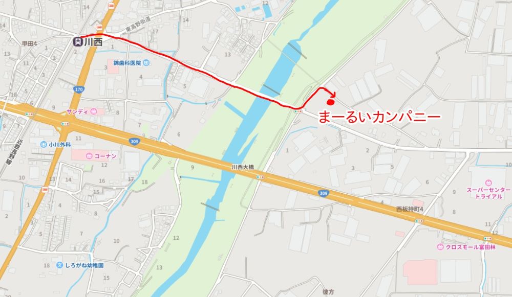 ご存じの方も多いとは思いますが、念のため場所をおさらいします。近鉄川西駅から目の前の旧道(国道ではない方)をまっすぐに、昭和橋を渡り、すぐ北側まで来ると見えてきます。
