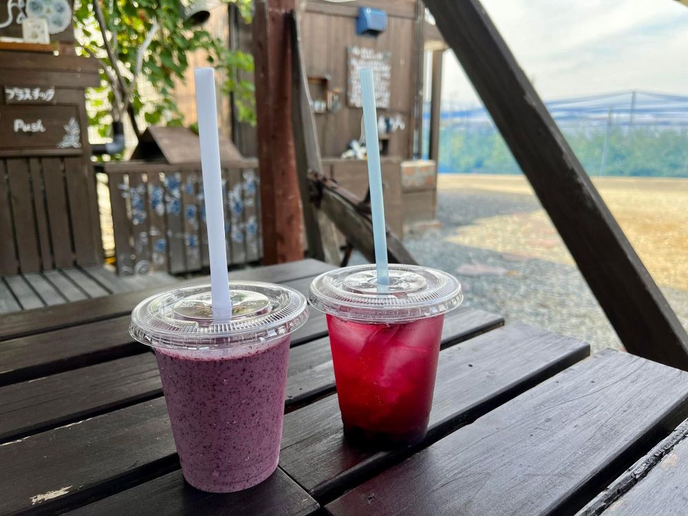 スムージーには100グラムものブルーベリーをふんだんに使用しているそうで、これもコスパ的にはすばらしいもの。ブルーベリー畑の前だからできることですね。