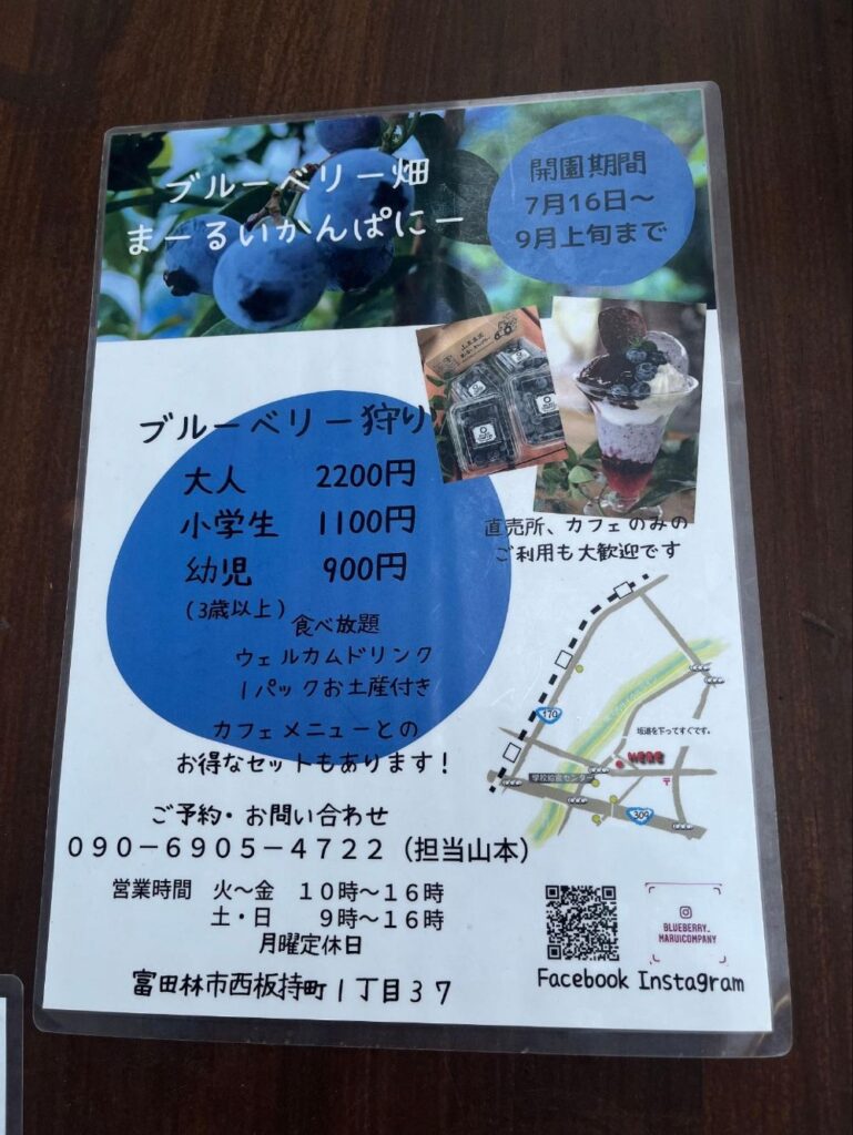 まーるいかんぱにーさんは、9月上旬まで、カフェとブルーベリー狩りを行っています。ただし、9月上旬とはあくまで目安。ブルーベリーが無くなれば終了となります。最新情報は記事の最後にリンクを張った各SNSをチェックしてください。