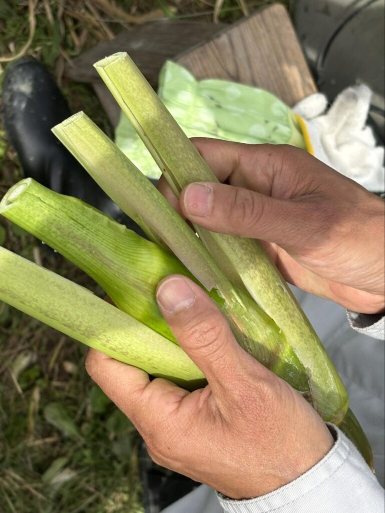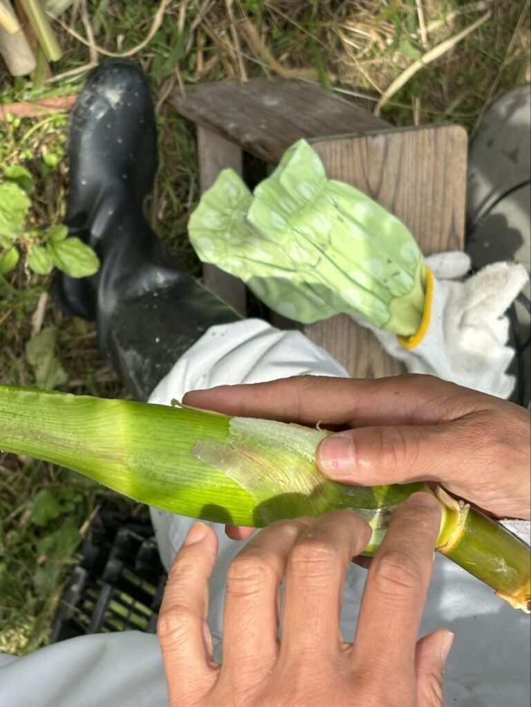 そして収穫期は10月末ごろまでで11月過ぎてくると黒穂菌の繁殖が増えすぎて、見た目が黒くなってしまうとのこと。食べるのには問題はないものの、見た目が悪くかつ食感も悪くなるので、綺麗なうちに採りたいといいます。