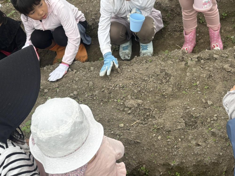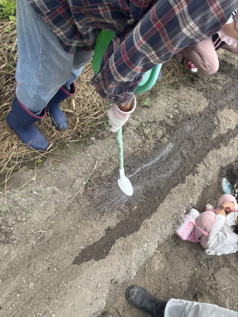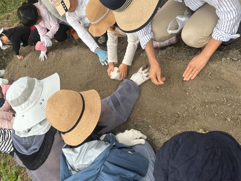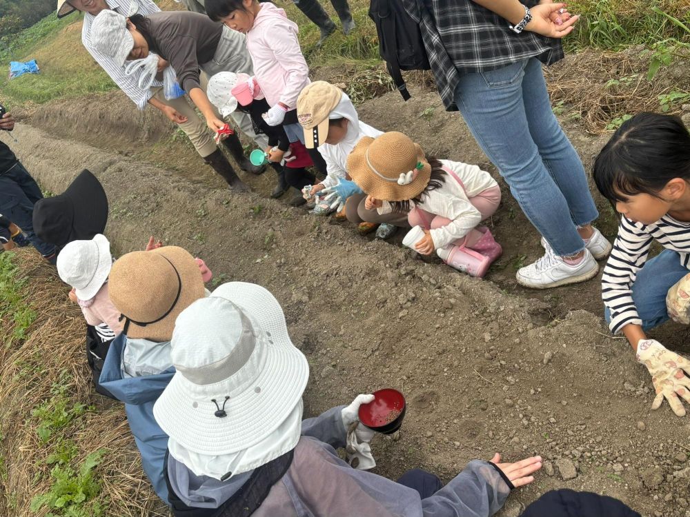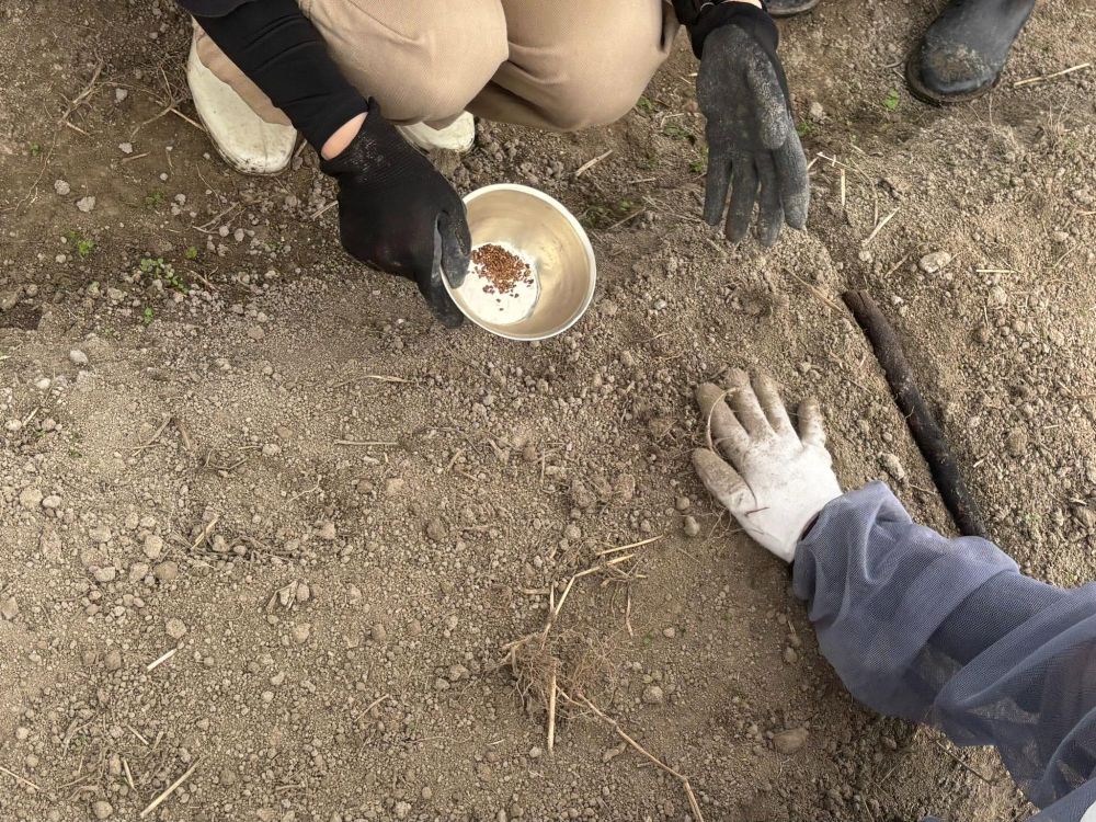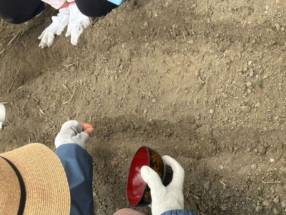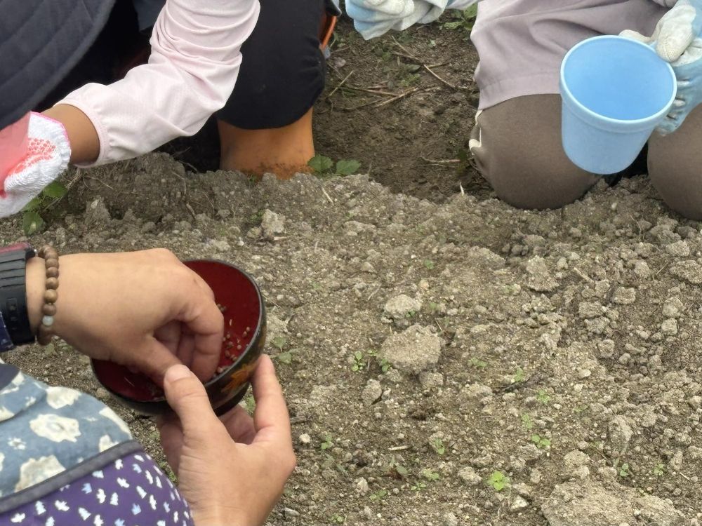 このように仲良く手分けして行います。人数が多いのであっという間に種まきが終わります。