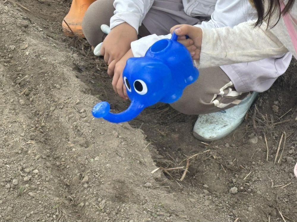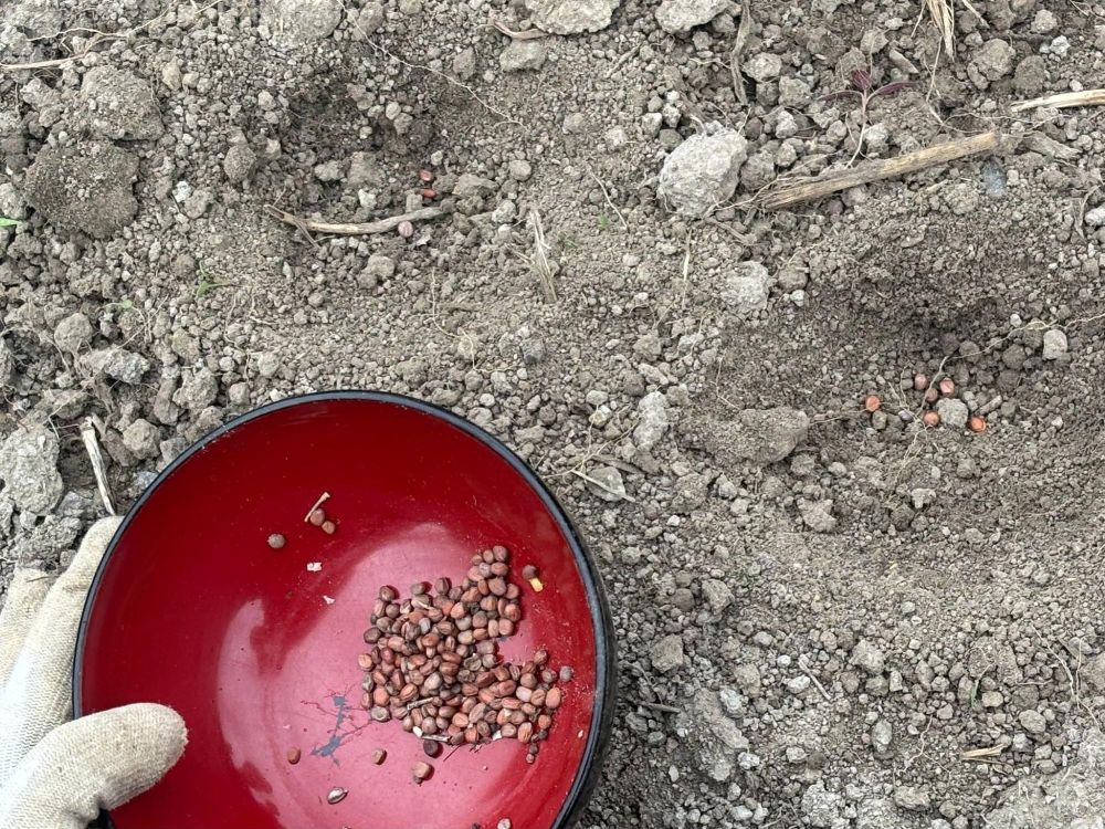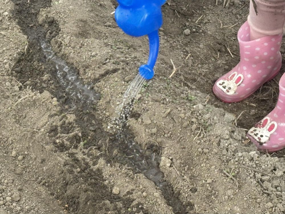 種を植えたら上から土をかぶせますが、あまり深くすると目が出てこないので、浅めにするのがポイントです。