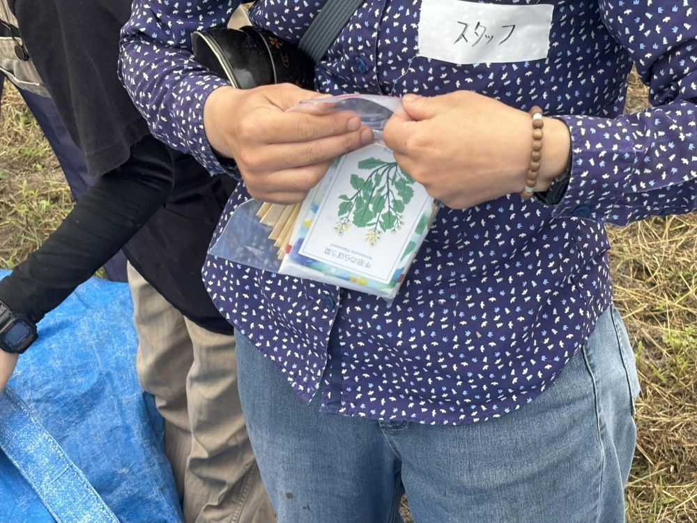 さて、種を用意しています。今回はのらぼう菜、春菊、大根の3種類の野菜の種を植えるイベントです。