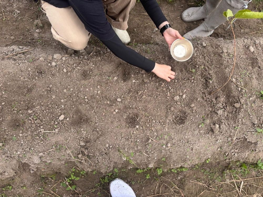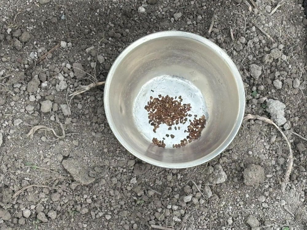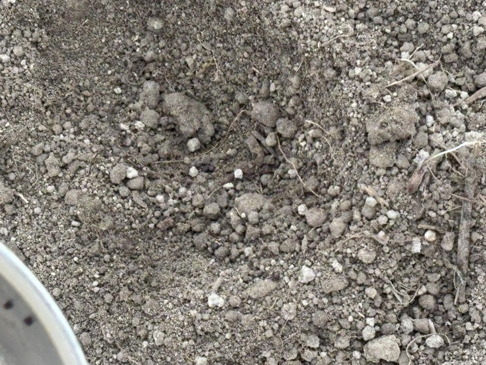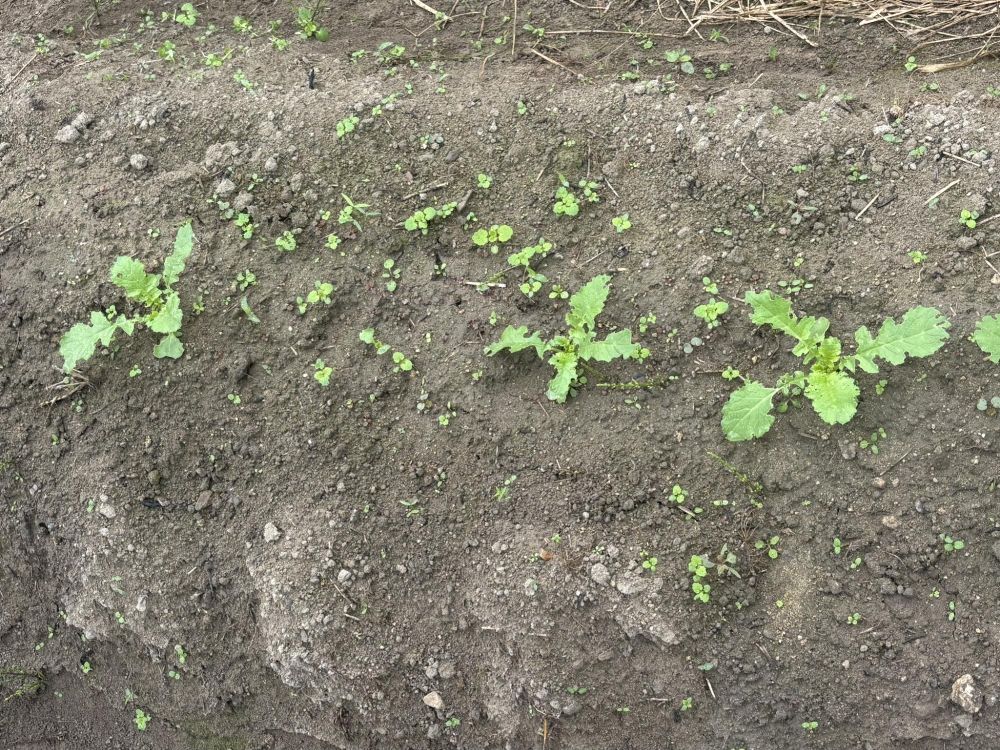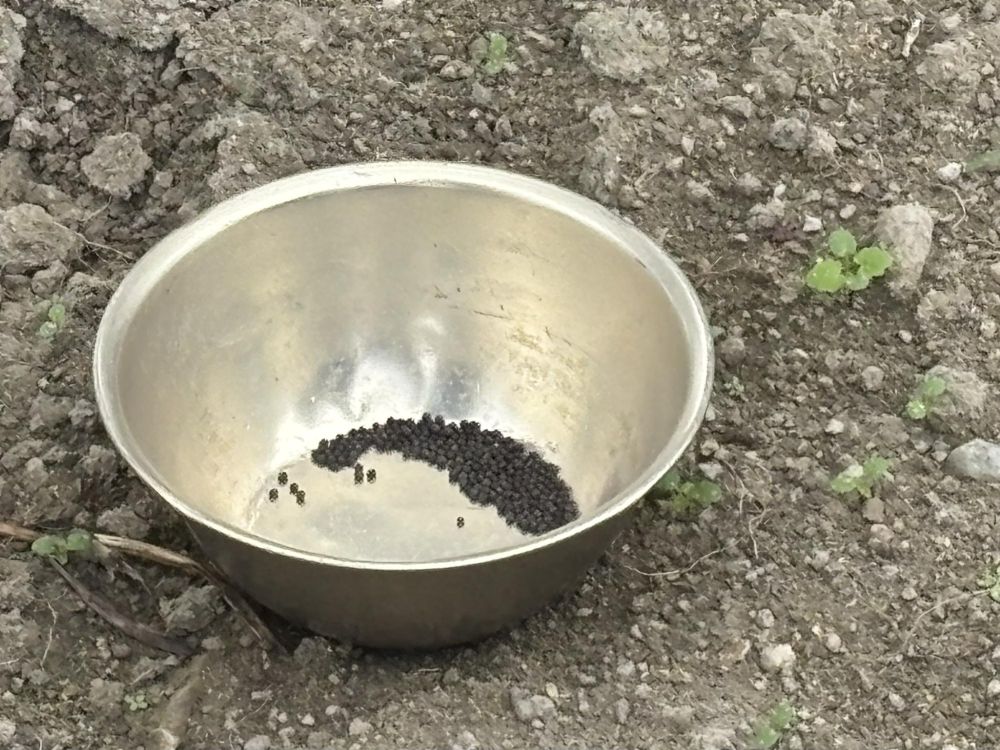 のらぼう菜の種を植えた直後です。画像の中央あたりをよく見ると黒い粒がみえます。