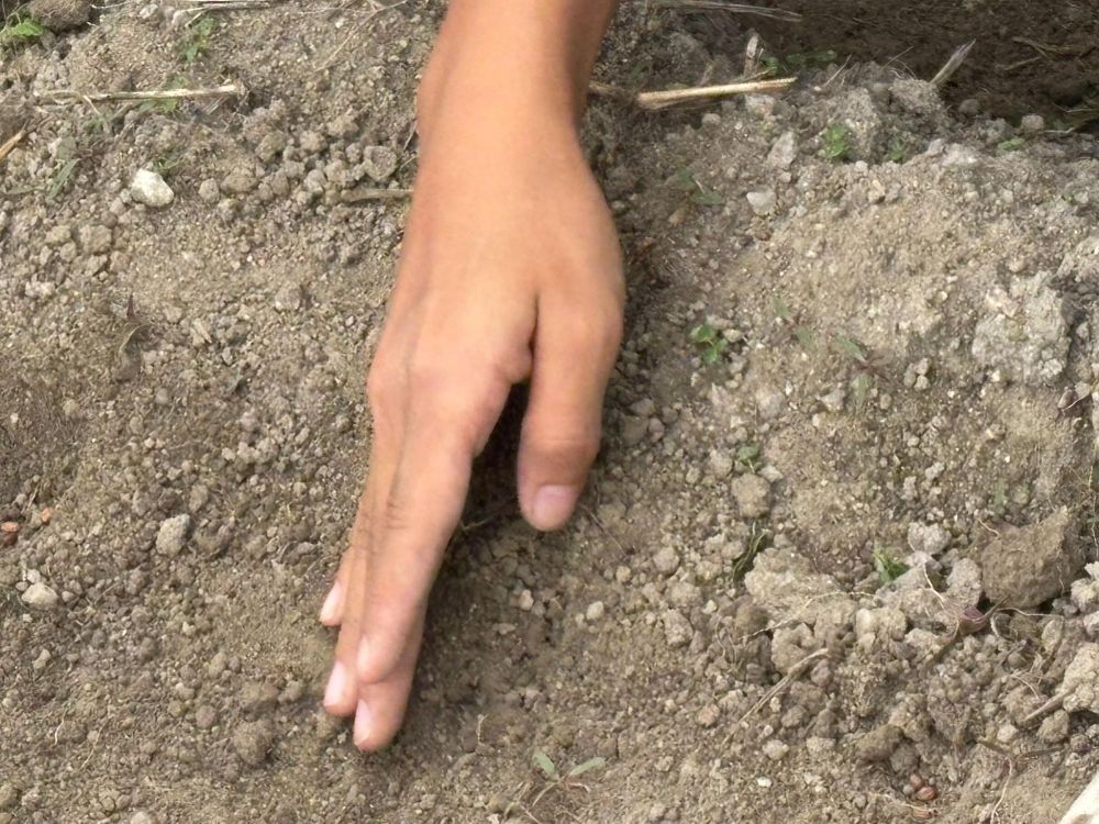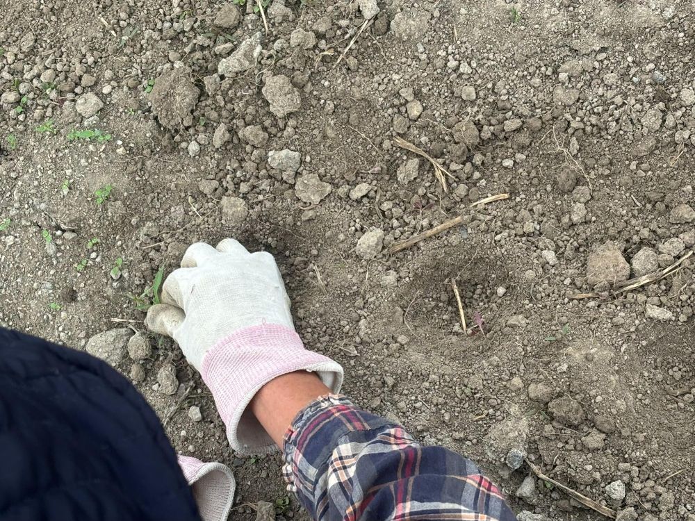 その前に植える畑の畝を手でなだらかにするところから始めます。