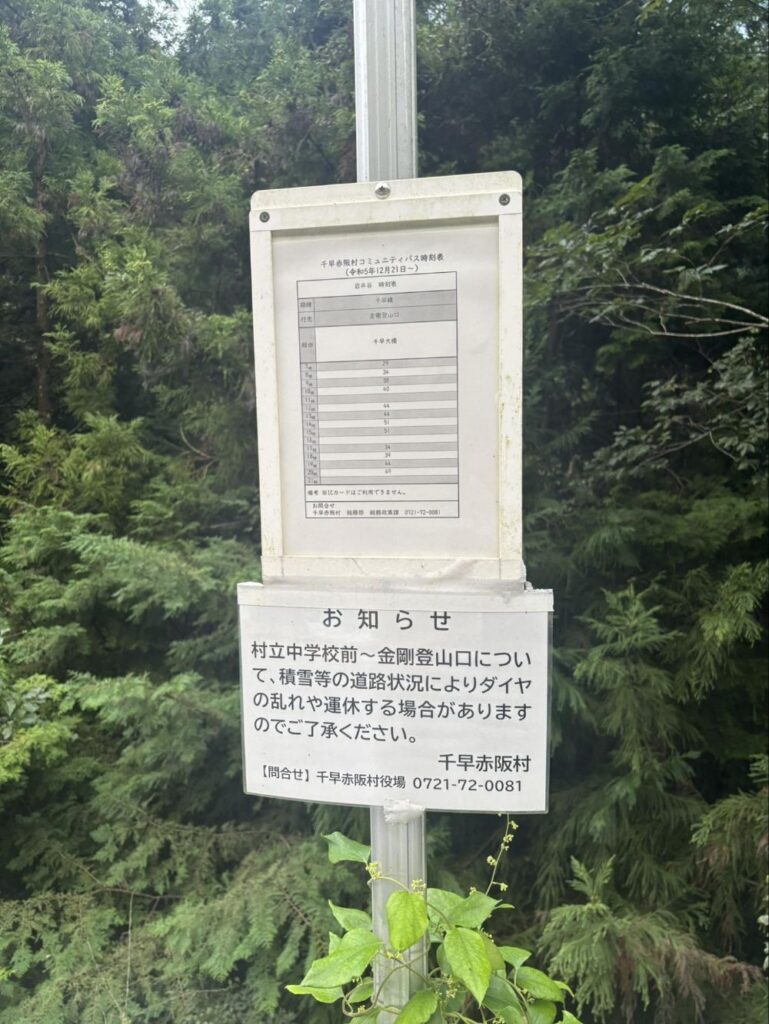 千早赤阪中学校前から金剛登山口の間には、元金剛バスを引き継いだ村のコミュニティバスが運行しています。その中に「岩井谷」という名のバス停があります。